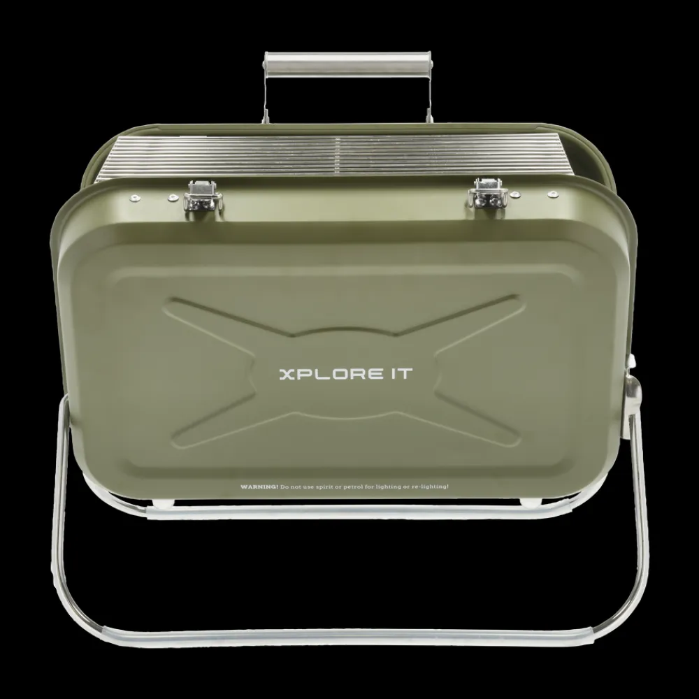 Handy kuffertgrill med grillrist, kulrist, drypbakke. 40 x 31,5 x 32 cm. Rustfrit stål, army.
