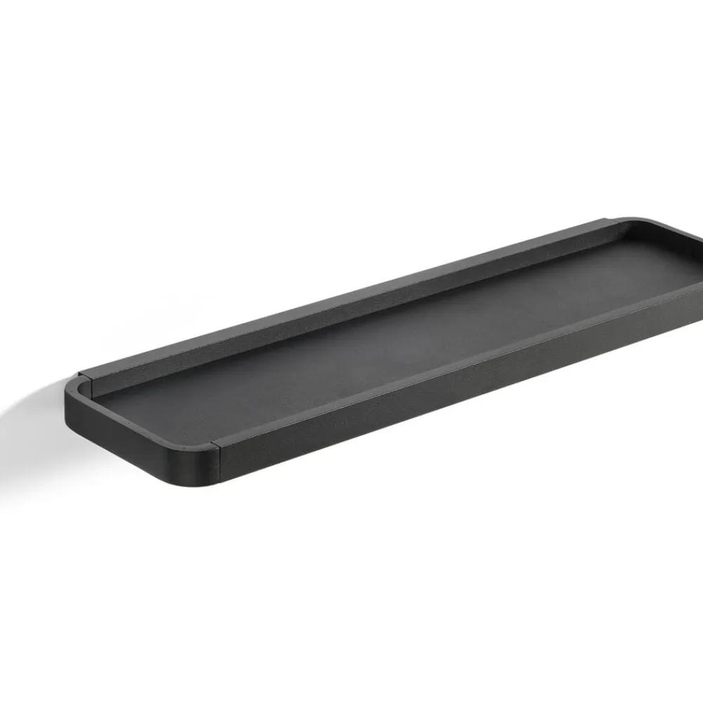Slå stilen i badeværelset an med den fine hylde til parfumer, cremer eller små fine krukker med duftpinde. Der fås et matchende vægspejl, og spejl og hylde reflekterer hinanden i et enkelt formsprog og samme bredde, der skaber et roligt og ensartet udtryk – uanset om man foretrækker sættet i sort eller hvid. Spejlet måler 70 x 44 cm, mens hylden er 44 cm bred.