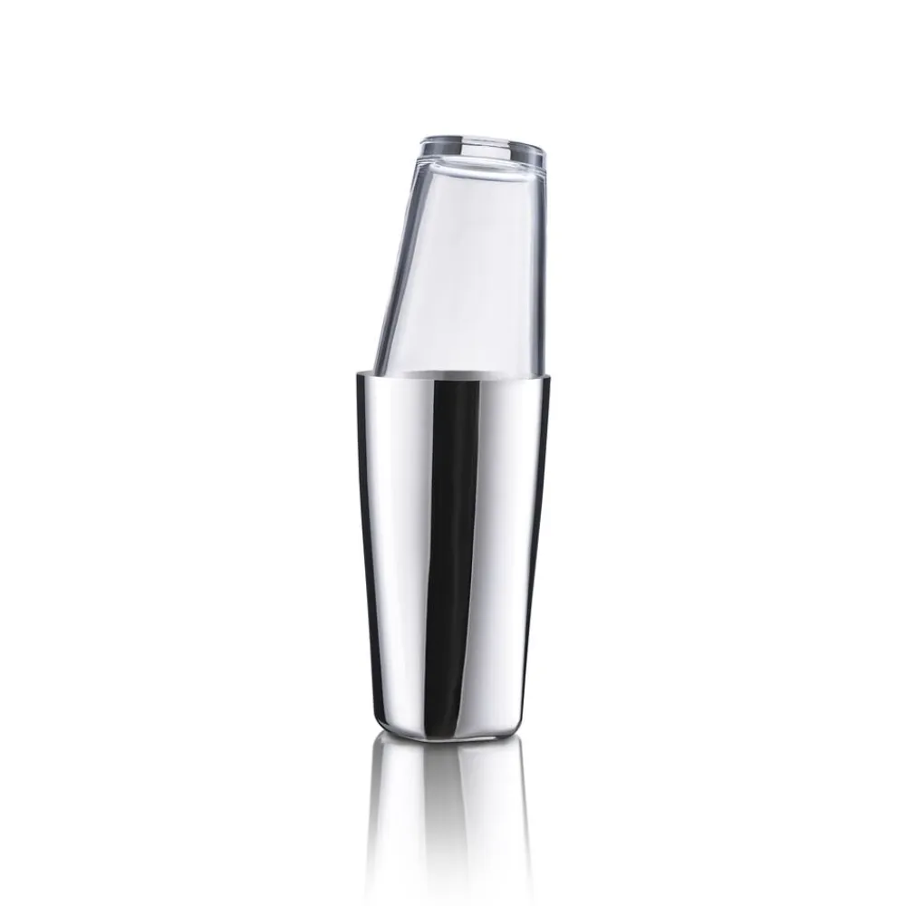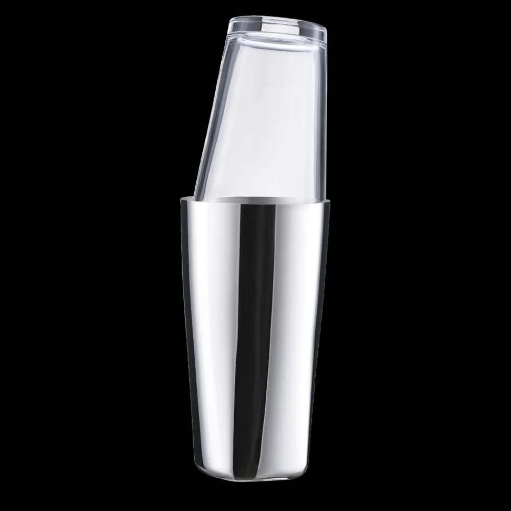 Boston shaker. De professionelle bartendere elsker den – og med god grund. Den består af to dele i henholdsvis stål og glas. Så kan du vurdere indholdets farve og konsistens, inden du hælder det i dit drinkglas. De to dele kan desuden nemt adskilles med et let vrid.