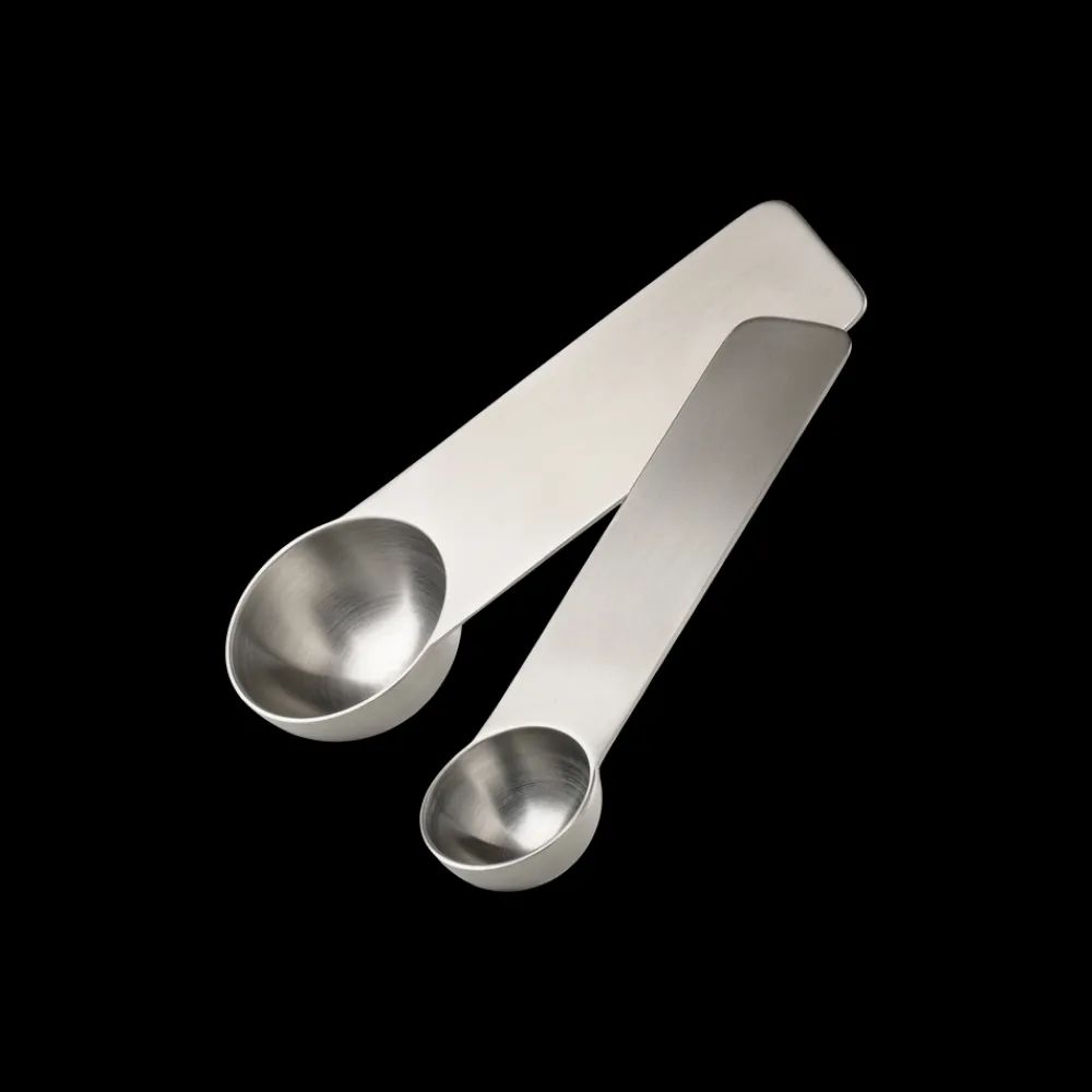 De to praktiske måleskeer i børstet stål er en gave for livet. Et uundværligt makkerpar for alle, der holder af at lave mad og bage. Teskeen og spiseskeen kan lægges i ske i skuffen, så de ikke fylder meget. Til gengæld gætter vi på, du vil bruge dem meget. Til kaffe, til krydderier, til hverdag og fest.
