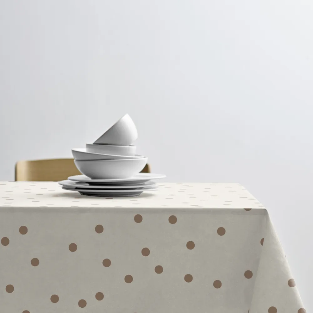 Dæk bordet med forfriskende prikker i taupe og skab en afslappet atmosfære med vores iøjnefaldende akryldug, der passer perfekt ind i en moderne og grafisk indretning. Kombiner gerne med forskellige kopper og tallerkner i friske og optimistiske farver for at skabe et levende udtryk. Akrylduge er det ideelle valg, når du ønsker en hyggelig og funktionel borddækning med hele familien.