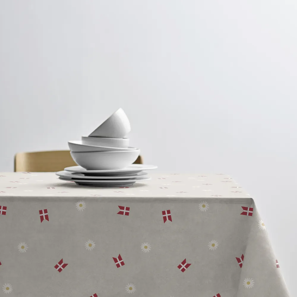 Dugen prydes smukt af Dannebrog og delikate margueritter, også kendt som Daisies. Dette design er skabt til at bringe glæde og fejring til enhver lejlighed.