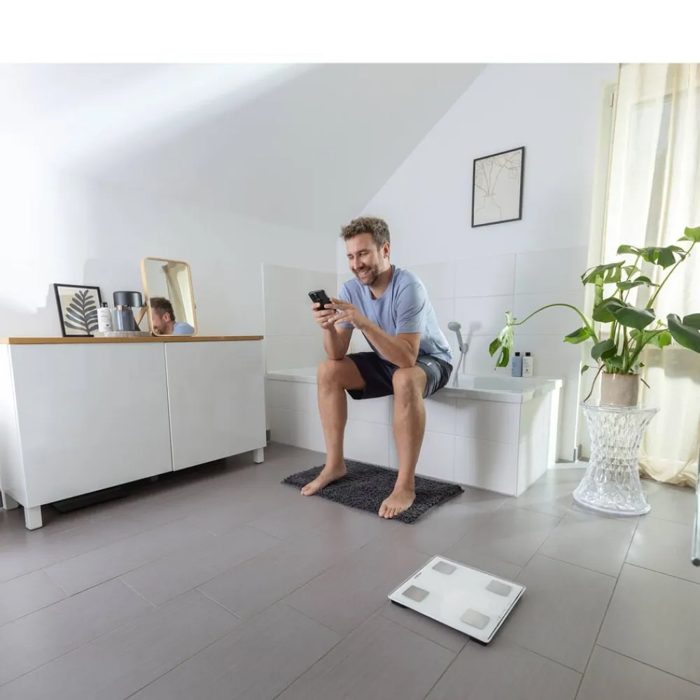 Shape Sense Connect Lite måler ikke kun vægt, men også fedtprocent, vandindhold, muskelmasse, BMI og kaloriebehov ved hjælp af bioelektrisk impedansanalyse (BIA). Alle data kan overføres direkte via Bluetooth til Soehnle MyScale-appen, så du nemt kan følge din udvikling. Kropsanalysevægten har et stilrent design med LED-display, der kun tændes, når du træder op på den, og forbliver usynligt i hviletilstand. Den kan bruges både med og uden appen og genkender automatisk op til 8 forskellige brugere. Med en maksimal kapacitet på 180 kg og mulighed for at vælge mellem kilogram (kg) og pund (lb) passer den til de fleste behov.