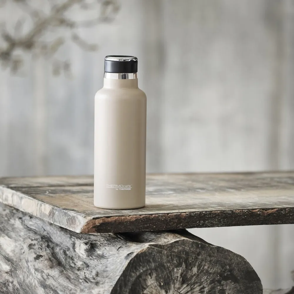Thermos Hydration 600 ml termoflaske holder dig hydreret, når du er på farten. Fremstillet af rustfrit stål og med vakuumisolering, som holder dine drikkevarer kølige – perfekt til både travle dage og udflugter. Termoflasken holder helt tæt, så du kan trygt tage den med dig uden bekymring. Låget har et praktisk håndtag og et sugerør, der nemt kan vippes op og ned.