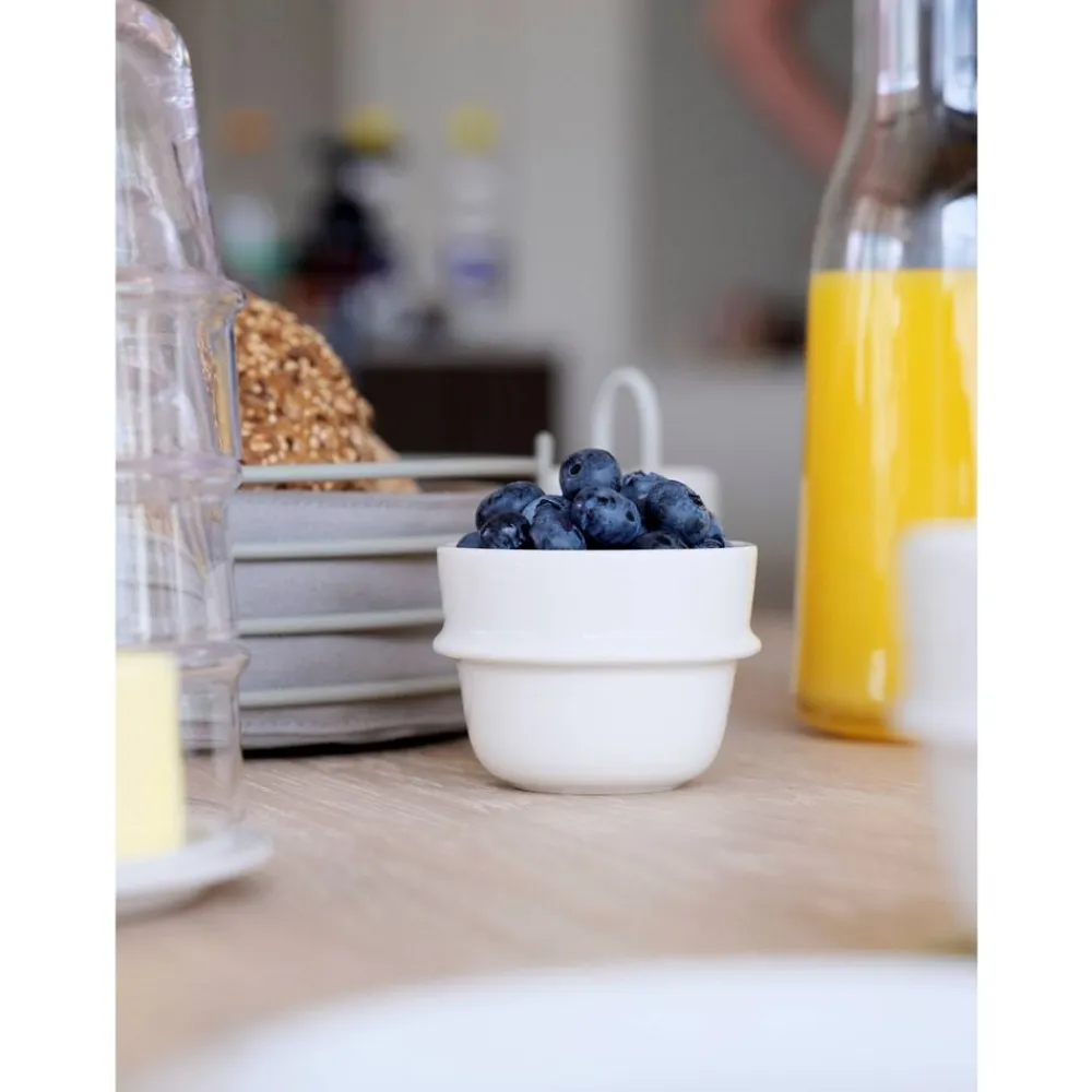 Serviceserien Eau er et godt bud på en moderne klassiker. Udtrykket enkelt og imødekommende, og alt overflødigt er skåret væk. Du kan stable kopper, skåle og tallerkener sikkert, hvilket selvsagt letter borddækning og afrydning, men også optimerer pladsen i skabet. Desuden kan tallerkenerne fungere som låg til skålene. Samtidig betyder det, at du kan lave uhøjtidelige og charmerende buffet-opstillinger som i Sydeuropa, hvor tallerkenerne stakkes til høflig og hyggelig selvbetjening. Uanset om du inviterer på tapas i hjemmet, kagebuffet i haven eller spontan nabomiddag på villavejen. EAU-serien består af tallerkener og skåle i forskellige størrelser samt kop og karaffel. Porcelænet i serien er udført i den klassiske og lækre nuance offwhite.