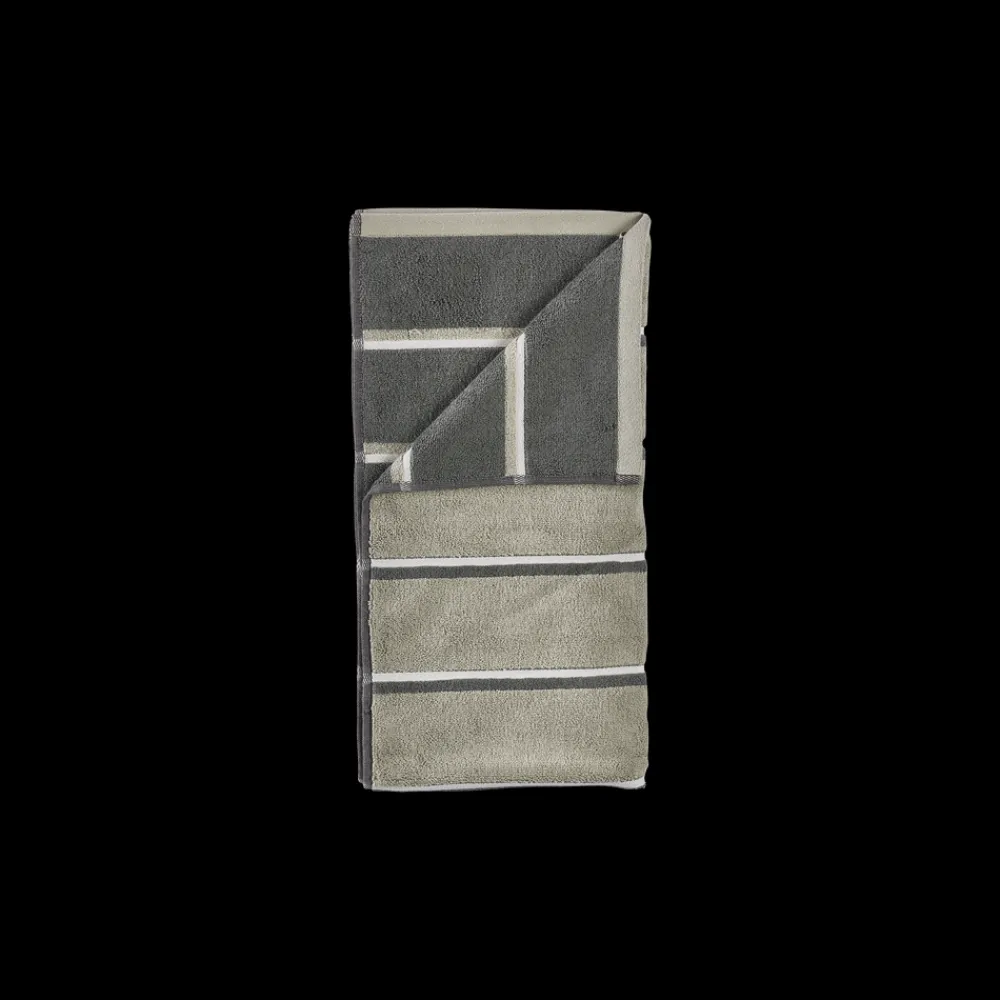 De retroinspirerede striber tilføjer et grafisk, urbant touch, og med en blød, kraftig kvalitet i garnfarvet 600 grams bomuld, føles håndklædet lige så lækkert, som det ser ud.