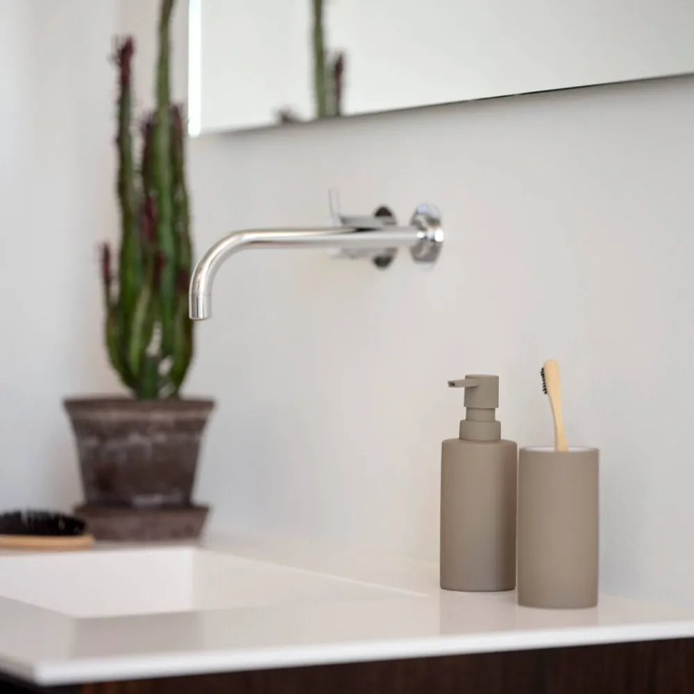 Med Solo badserie er der helt rene linjer. Produkterne er samtidig holdt i rene farver og står rent, flot og funktionelt i badeværelset. Sæbedispenseren rummer 0,3 l og matcher tandbørstekrus, toiletbørste og pedalspand perfekt.