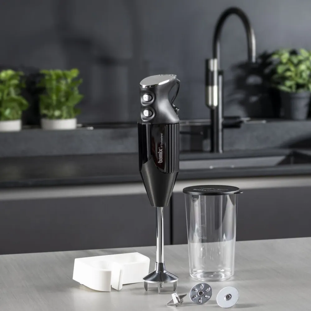 bamix® Mono-stavblender med en kraftig 200 watt motor, der sikrer pålidelig hjælp til selv de hårdeste opgaver i køkkenet. Stavblenderen har to hastighedsindstillinger og en praktisk ledning, der giver masser af fleksibilitet. Til produktet medfølger multifunktionskniv, blenderskive, piskeskive, bæger med låg 600 ml og vægholder samt en instruktionsmanual. Livstidsgaranti på motor.