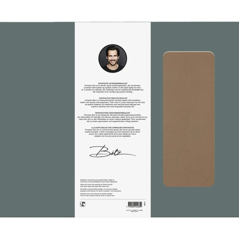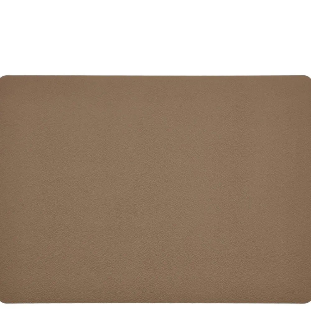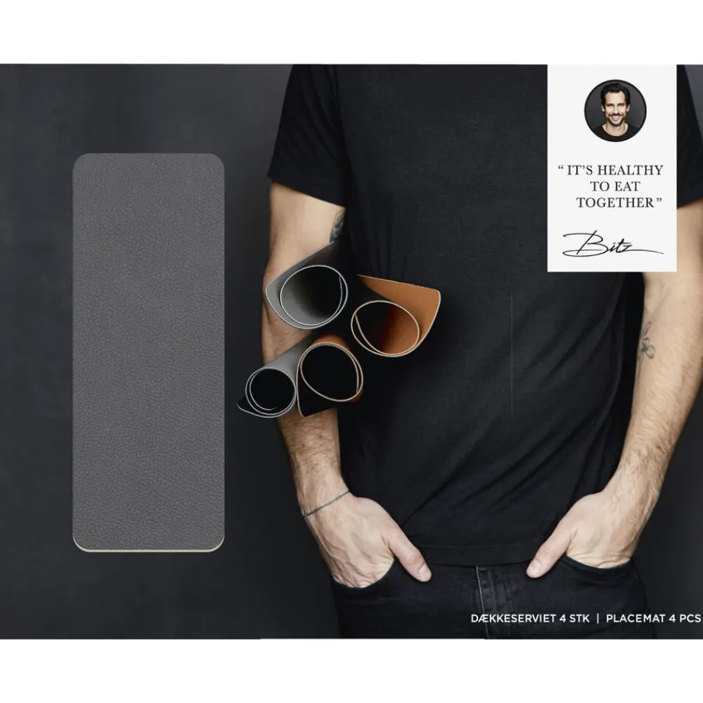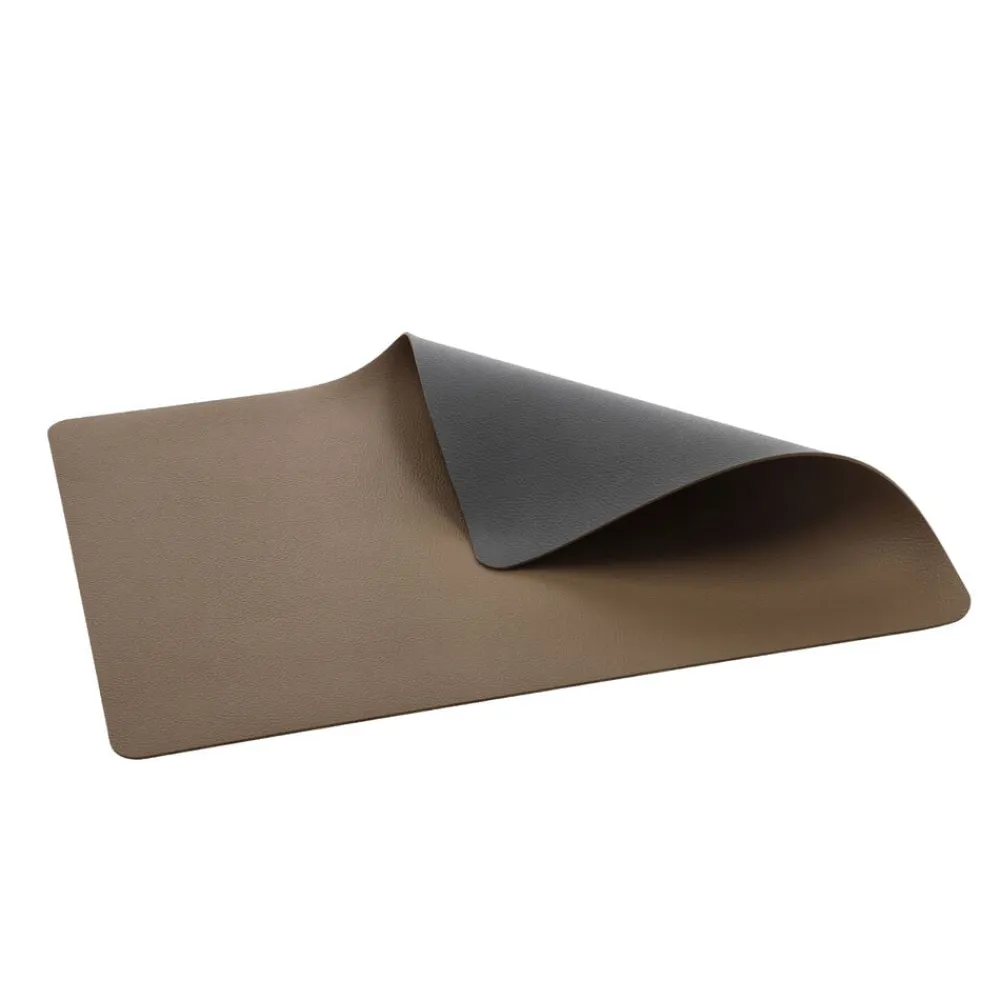 Vendbare dækkeservietter i praktisk vaskbart læderlook giver borddækningen et råt og moderne udtryk. Wood/Titanium.