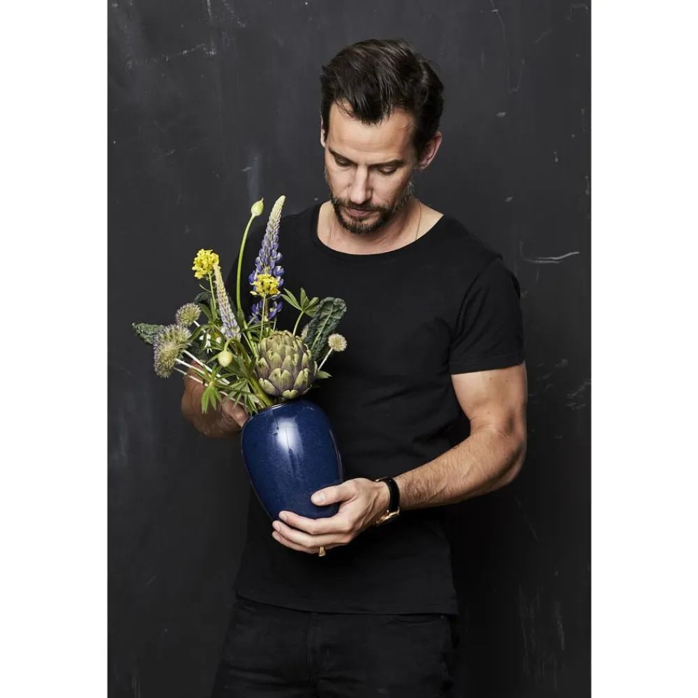 BITZ vase i stentøj med blank, reaktiv glasur. Arranger den med en enkel buket fra haven eller fyld den med vilde markblomster. Glasurens smukke farve trækker blikket til sig og understreger vasens klassiske form. 20 cm høj.