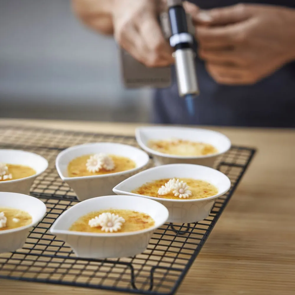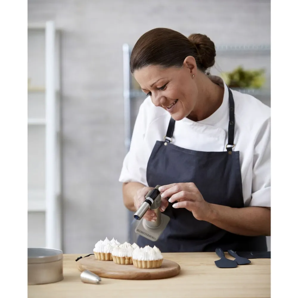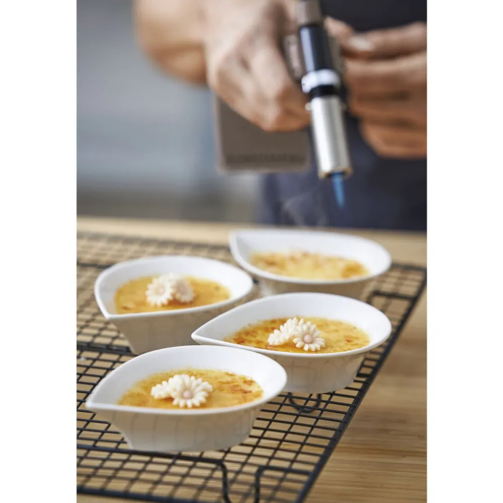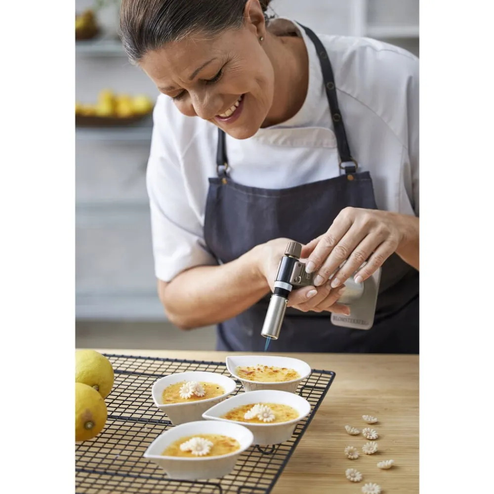 Til dig som gerne vil karamellisere, flambere eller smelte på få sekunder. Med denne fine gasbrænder rammer du præcis dér, hvor sukkeret skal blive sprødt, osten skal smelte eller marengsen skal have farve. Brug den direkte på tallerkenen, i formen eller hvor det passer bedst. Gasbrænderen har elektronisk tænding, justerbar flamme og kan bruges fra alle vinkler. Den er nem at genfylde med almindelig lightergas.