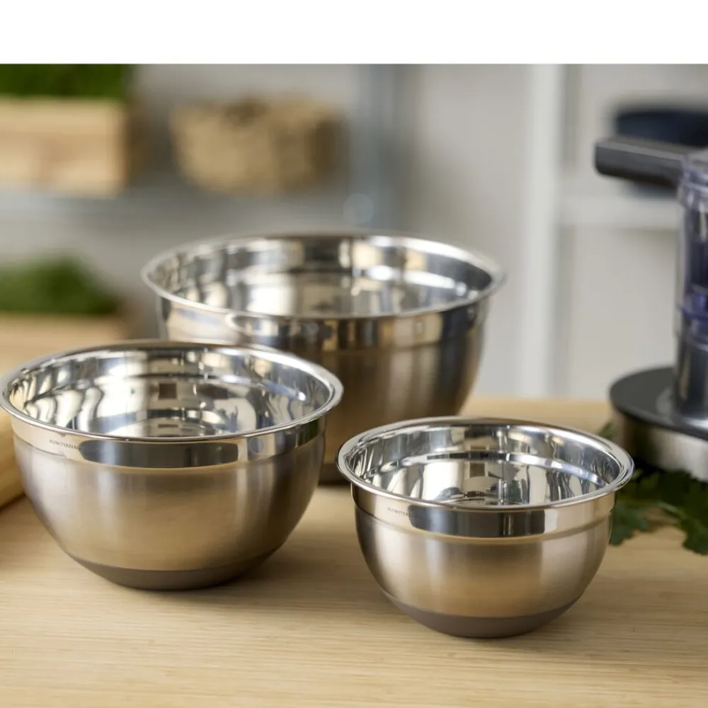 Denne røreskål i rustfrit stål har en skridsikker silikonebund, som sørger for en god stabilitet, mens ingredienserne bliver blandet sammen. Skålen rummer 3 liter og er perfekt til de fleste opgaver, du står overfor i køkkenet. Og så kan den rengøres i opvaskemaskinen, hvilket betyder mindre tid på opvasken og mere tid til at nyde det, du har lavet. Vaskes i opvaskemaskine før første brug.