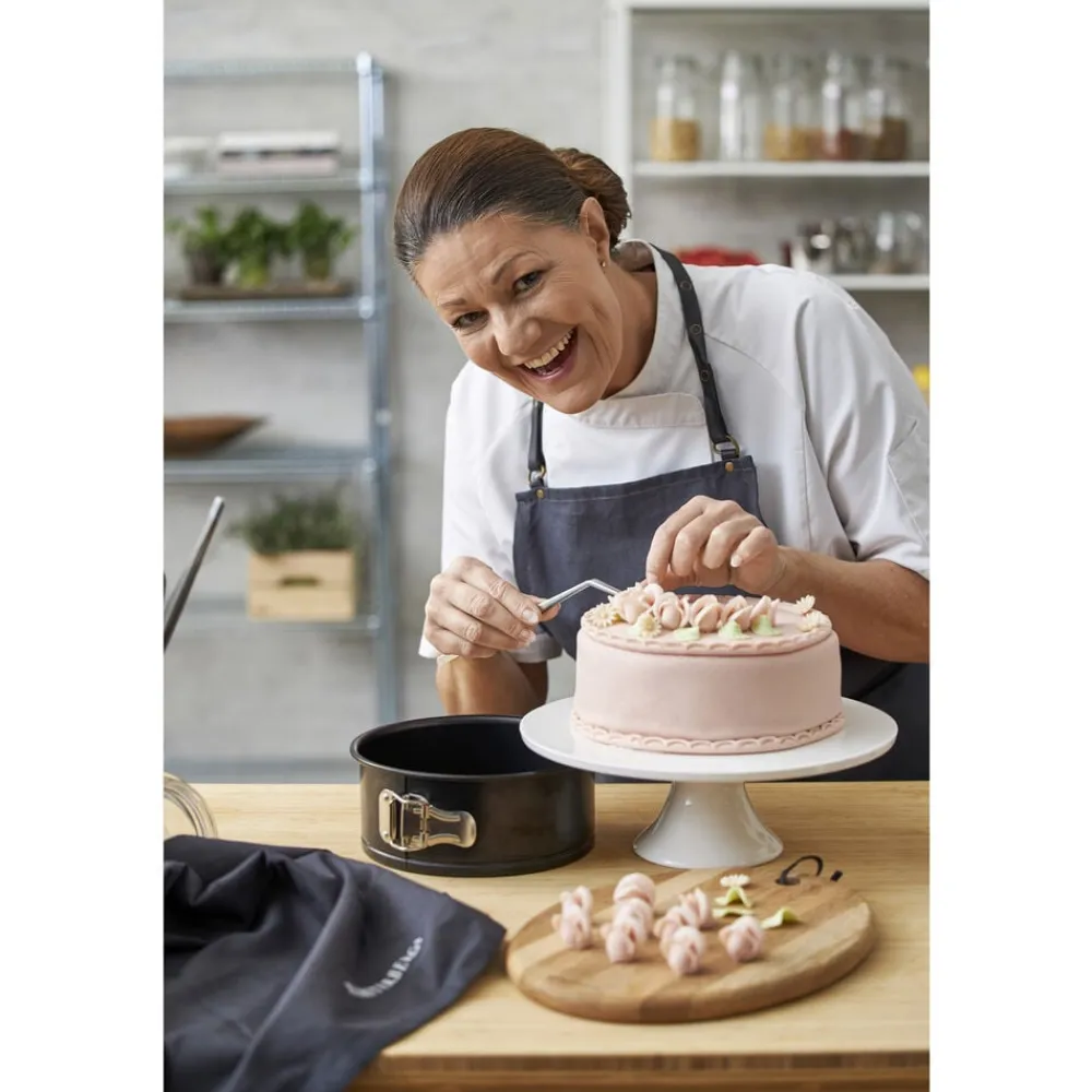 Let stålform med non-stick-belægning, som slipper nemt og er let at rengøre. Formen rummer 2,1 liter, er 8,5 cm høj og anvendes til alle slags bagte rørekager som fx sandkage, gulerodskage, drømmekage, chokoladekage samt til brød og tykke lagkage- og dessertbunde.