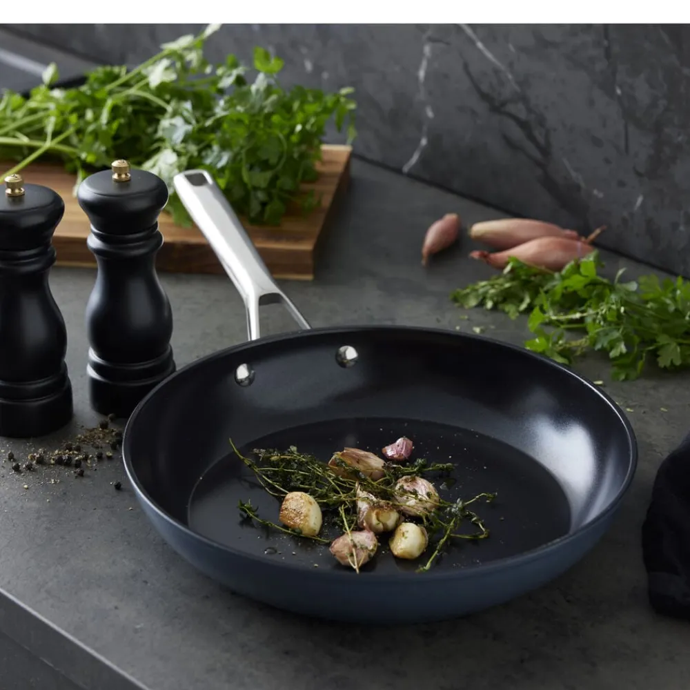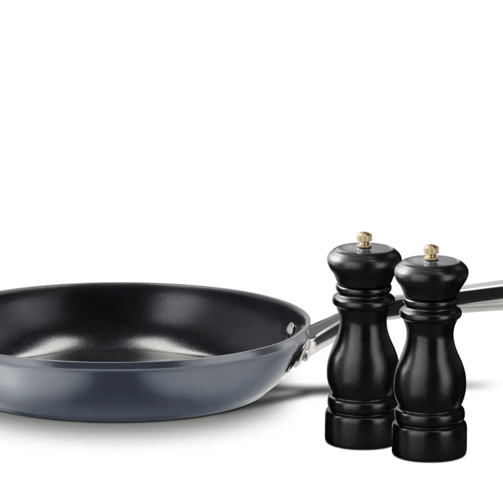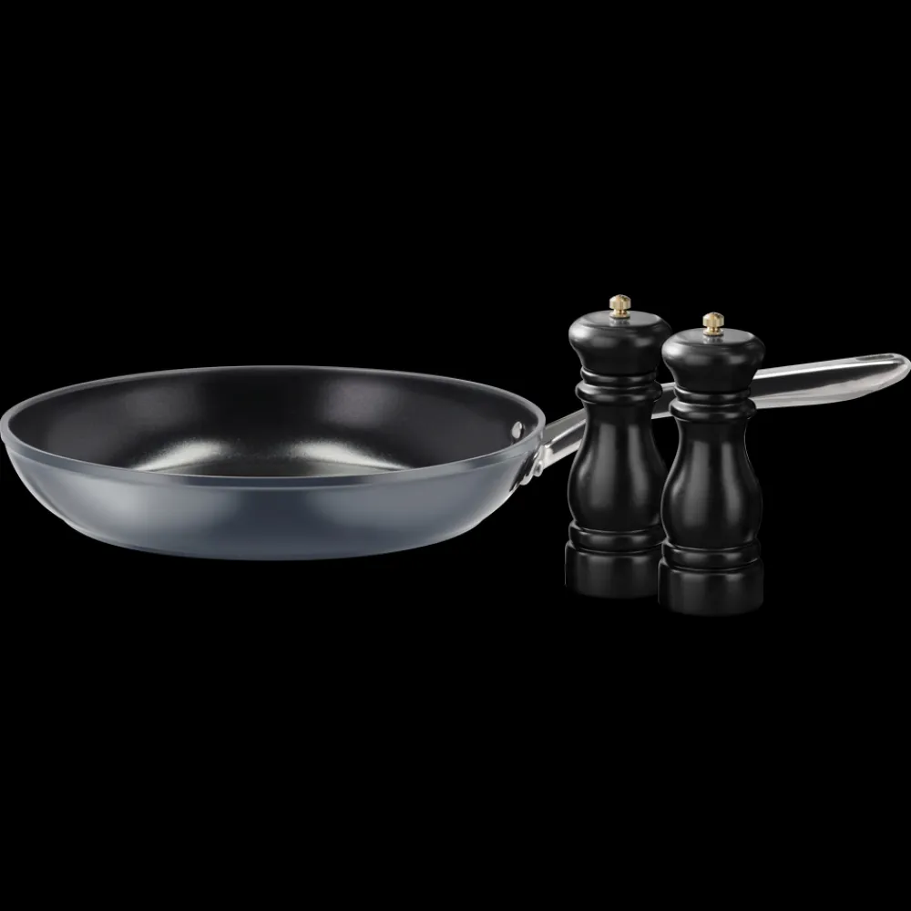 Vivian stegepande 28 cm med keramisk non-stick-belægning samt Himalaya salt- og peberkværnsæt i sort akacietræ, H 16,5 cm.