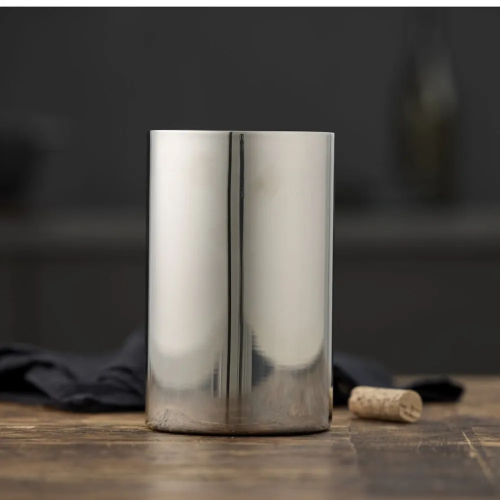 Dobbeltvægget vinkøler i rustfrit stål, ideel til at holde vinflasken kold. Dia. 12 x H 19 cm.