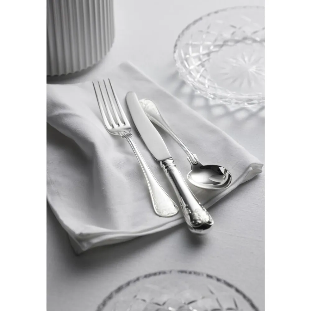 Bestikserien Gammal Fransk er romantisk og stilfuld. Formgivningen er inspireret af det 18. århundredes nyklassicisme, som på skaftet kombineres med et bladmønster i form af en fransk lilje. Designet føles rart at holde om og har samtidig en god tyngde, når du vejer bestikket i hånden.