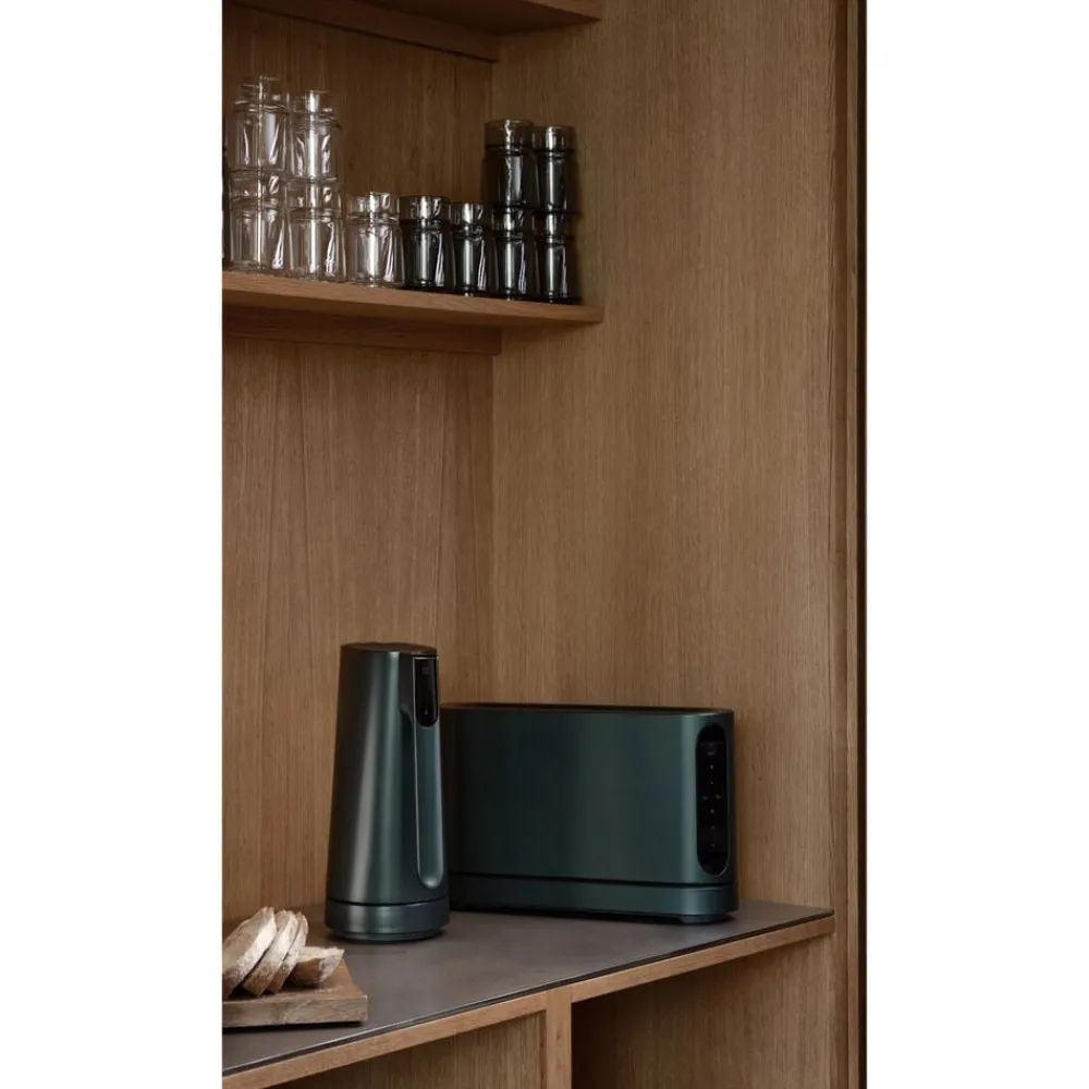 Jacob Jensen elkedel sætter en ny standard, når det gælder opvarmning af vand til din kaffe eller te. Den er fremstillet af solide materialer i en elegant form. Elkedlens display vækkes til live, når din hånd nærmer sig, og går i dvale, når kedlen ikke er i brug. Den har en kapacitet på 1,2 liter vand, og med syv forudindstillede temperaturindstillinger, der spænder fra 70 °C til 100 °C, kan temperaturen styres via touch displayet. Det digitale display gør det nemt at overvåge den aktuelle vandtemperatur, mens en blid tone signalerer, når dit vand har nået den ønskede temperatur. Derudover sikrer funktionen “Keep Warm”, at vandet bevarer den valgte temperatur, indtil kedlen fjernes fra basen.