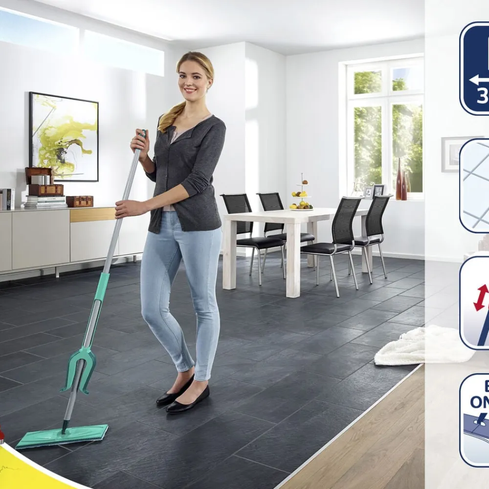 Picobello gulvvasker med teleskopskaft er praktisk og nem at håndtere. Med den enkle pressemekanisme på håndtaget kan du let presse vandet ud af kluden uden at skulle bukke dig eller få hænderne i det snavsede vand. Teleskopskaftet kan justeres til din helt rigtige, individuelle arbejdshøjde. Picobello er udstyret med en mikrofiberklud, der fjerner snavs fra alle typer gulve. Kluden fastgøres med velcro og kan let tages af og vaskes ved 30 grader. Vaskebredden er 33 cm.