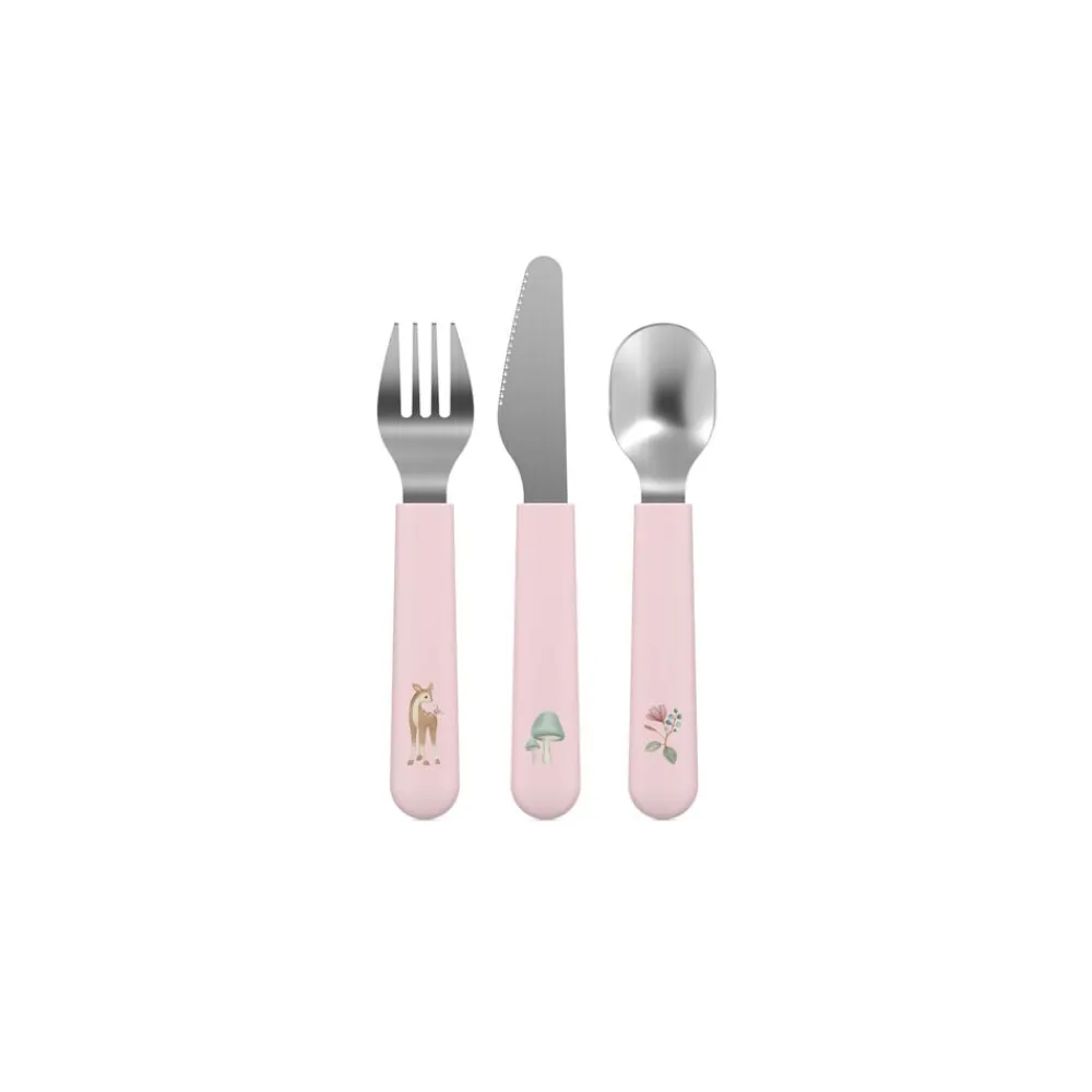 Funktionelt bestiksæt med kniv, gaffel og ske til småbørn, der spiser selv. Rustfrit stål med rundede plasthåndtag, der giver et behageligt greb. Kniven har skærekant på den ene side. Velegnet til opvaskemaskine. Fra 2-3 år. PP og rustfrit stål.