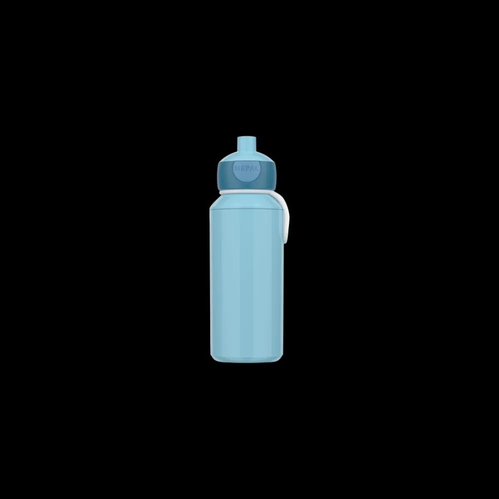 Mepals robuste drikkeflaske rummer 400 ml, har praktisk silikonestrop og et smart pop-up system med mundstykke, der nemt udløses ved tryk på en knap og samtidig er let at skille ad og rengøre.