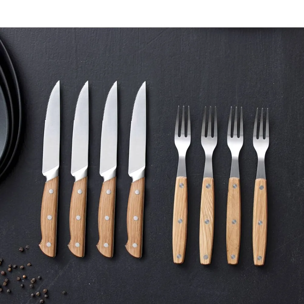 Bestiksæt med 4 steakknive og 4 steakgafler. Sættet er velegnet til udskæring af en god bøf. Det kan også bruges til en lækker pizza.