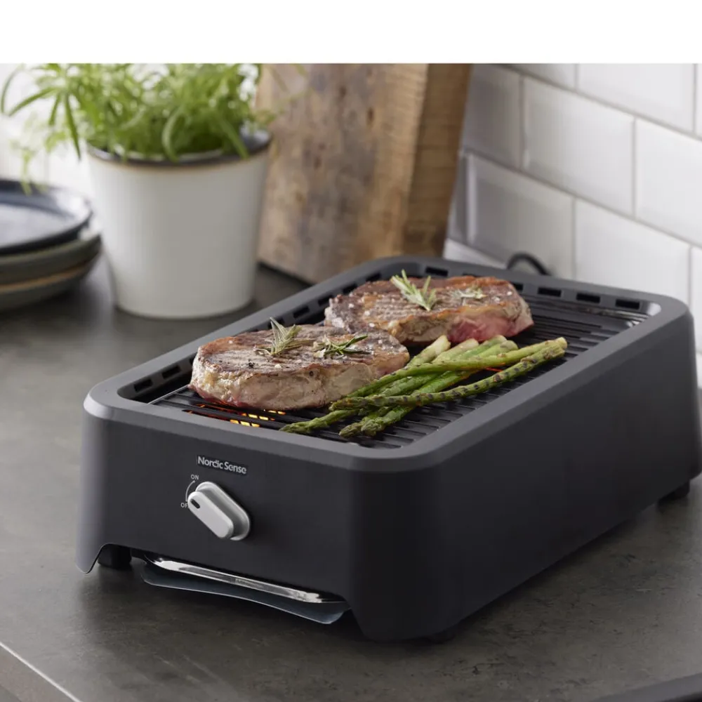 Uanset hvor du skal grille, er der altid plads til denne elektriske bordgrill. Den kan bruges både indendørs og udendørs, og grillristen har en praktisk non-stick belægning, som er nem at rengøre. Grillområdet er 31,5 x 18,5 cm, så der er plads til både kød og grøntsager. Max temperatur 250 °C.