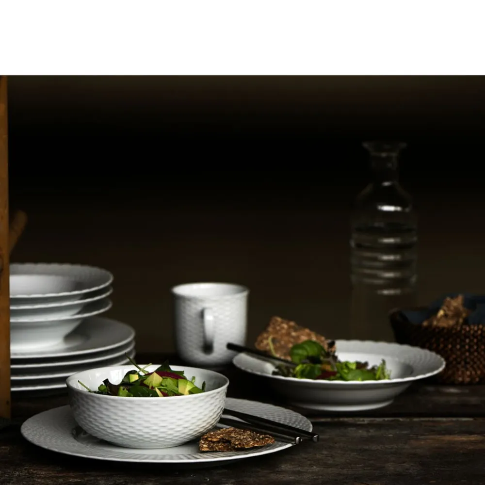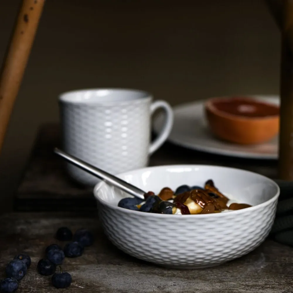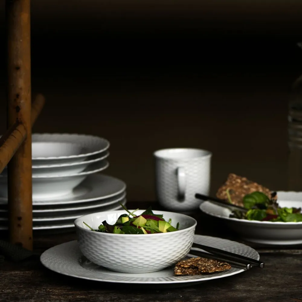 Porcelænsserien Basket er sprødt, hvidt porcelæn med en elegant dekoration, udført som en subtil, detaljeret vævning, inspireret af klassisk kurveflet. Basket puster liv i din daglige borddækning og er samtidig elegant nok til livets særlige lejligheder.