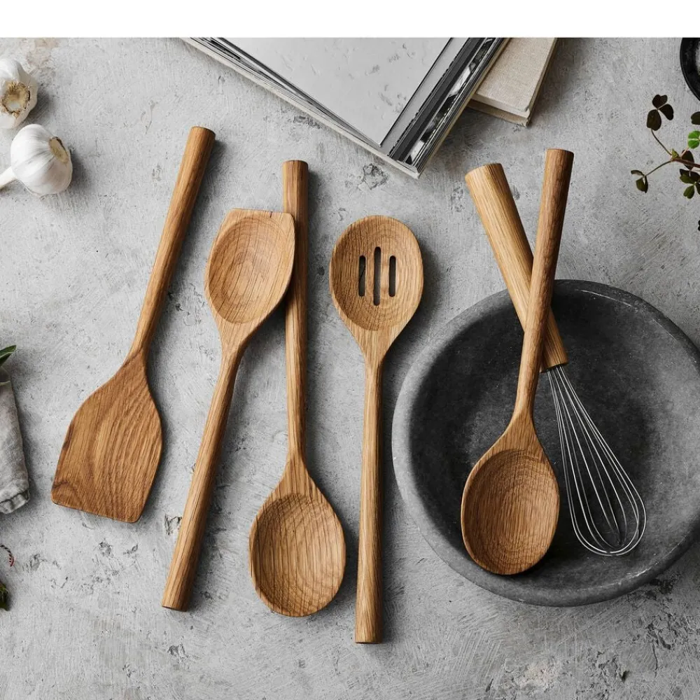 Træredskaber er behagelige at arbejde med og skånsomme mod gryder og pander. De har en levende struktur og en varm glød, der passer ind i ethvert køkken.