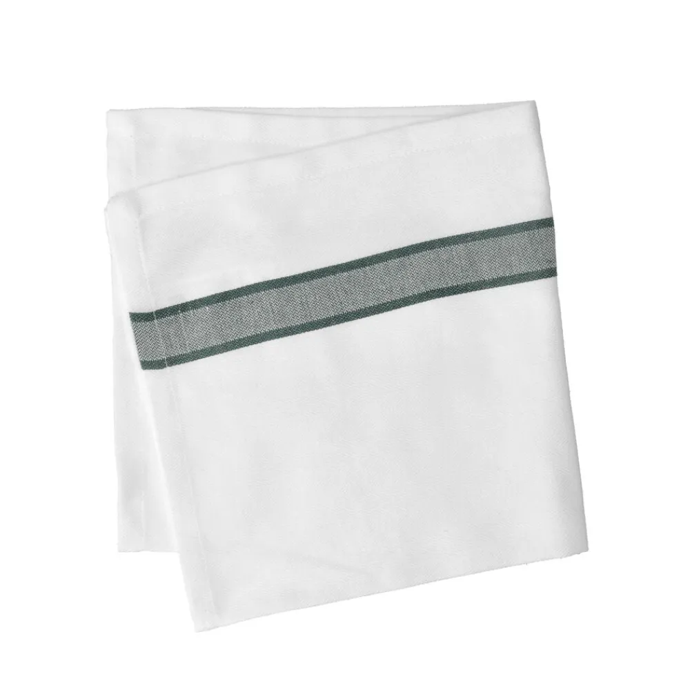 Stofserviet fremstillet i 100 % bomuld. Det klassiske hvide stof kombineret med en enkel farvet stribe giver mulighed for et let og personligt udtryk. Servietten er blød, behagelig og nem at folde, så du kan variere udtrykket, når borddækningen skal have lidt ekstra opmærksomhed.