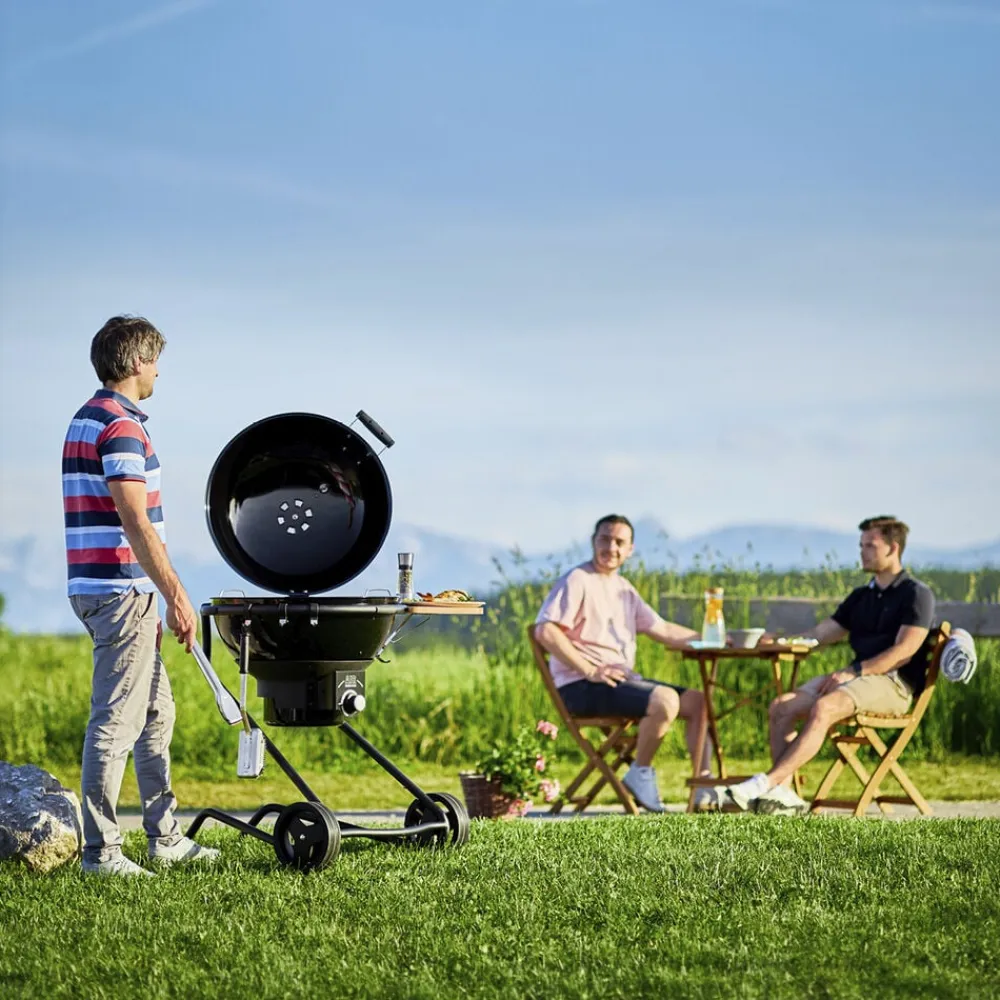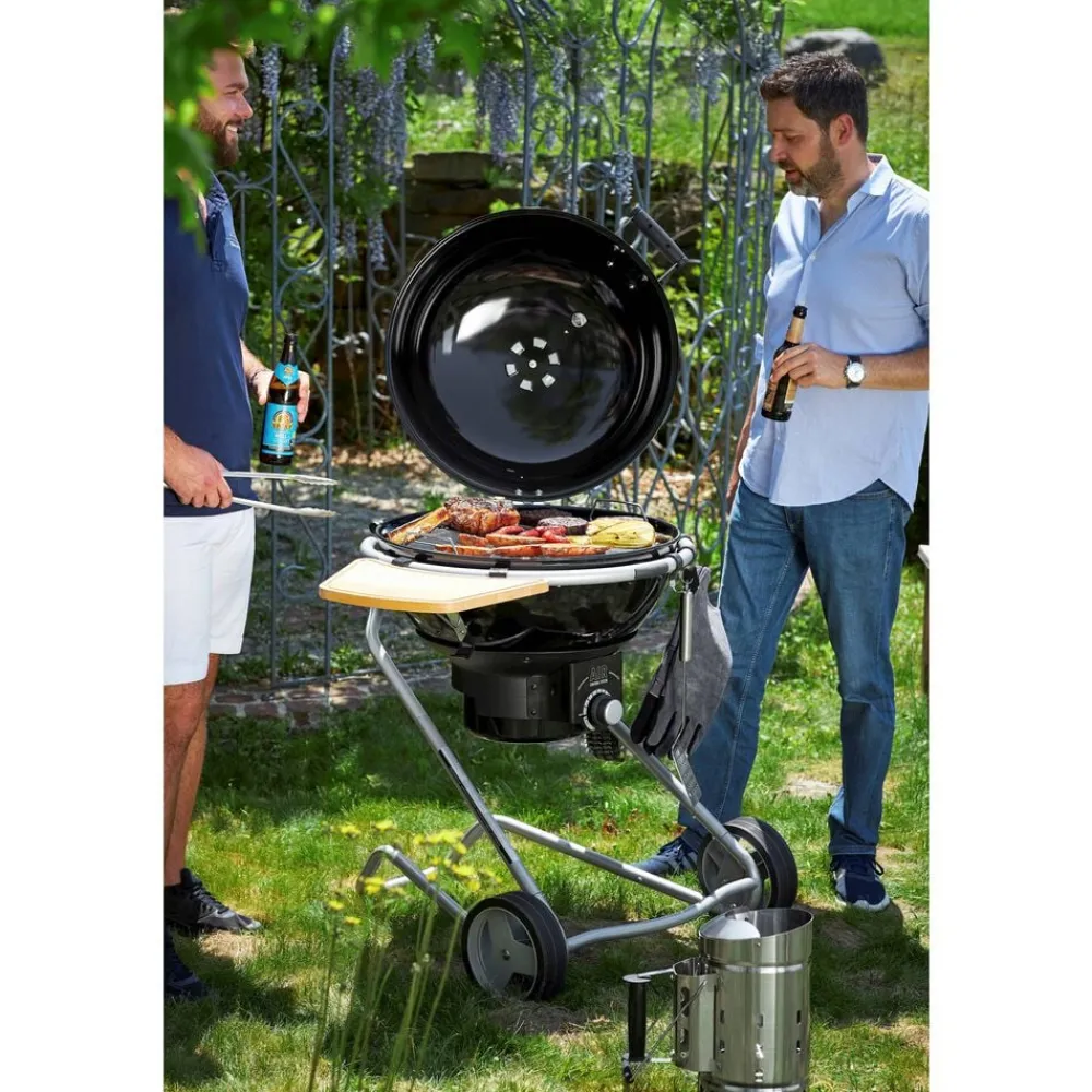 Rösles kulgrill No.1 F60 Air imponerer med sit højkvalitetsdesign med hjul med gummidæk, en behagelig arbejdshøjde og en ekstra stor grilloverflade med god plads til madlavning og håndtering. Grillflade dia. 60 cm. Let at vedligeholde.