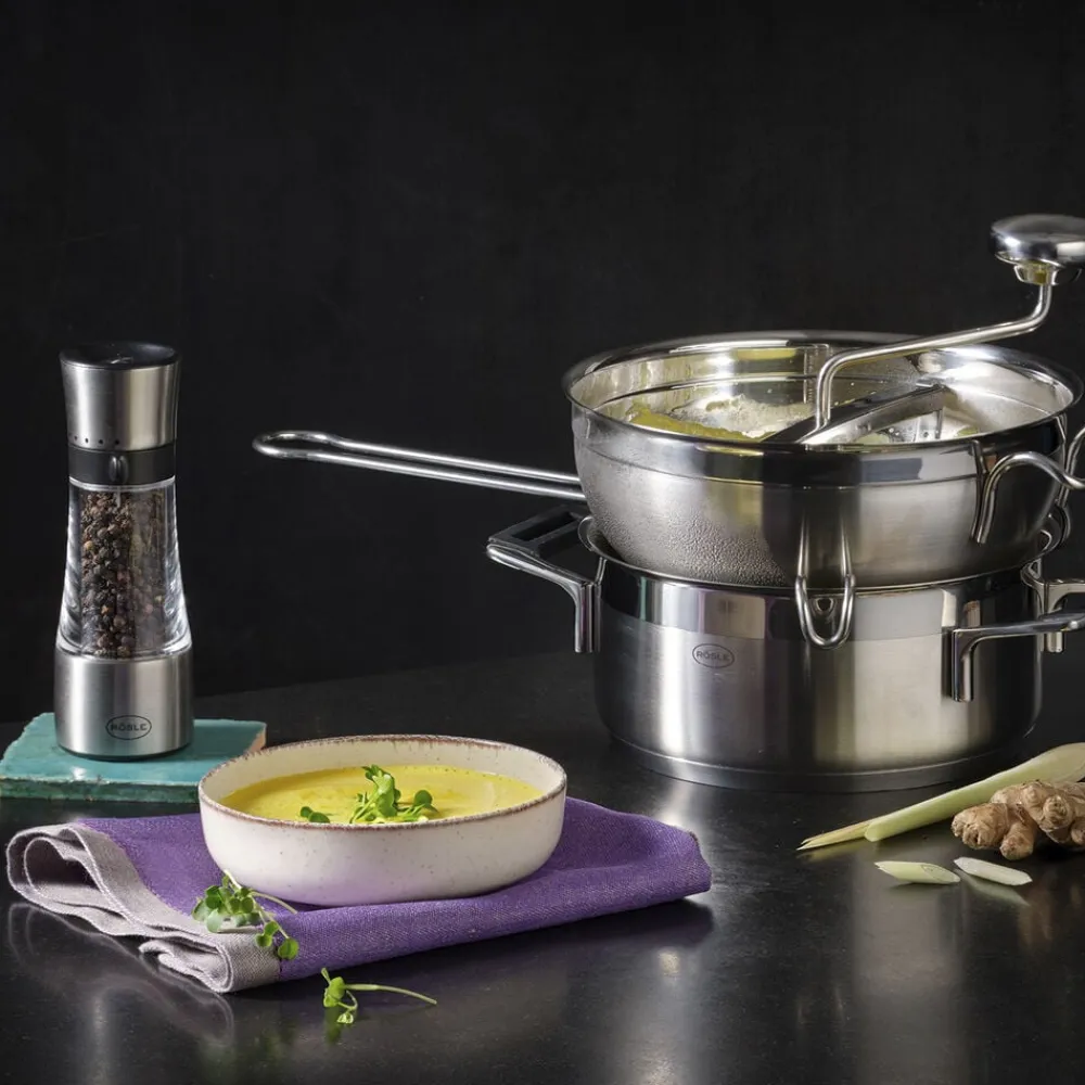 Passérmøllen fra RÖSLE er med sin robuste, rustfri stålkonstruktion designet til at imødekomme de krav, der kræves ved maling og forarbejdning. Møllen er fremstillet i rustfrit stål og tåler maskinopvask.