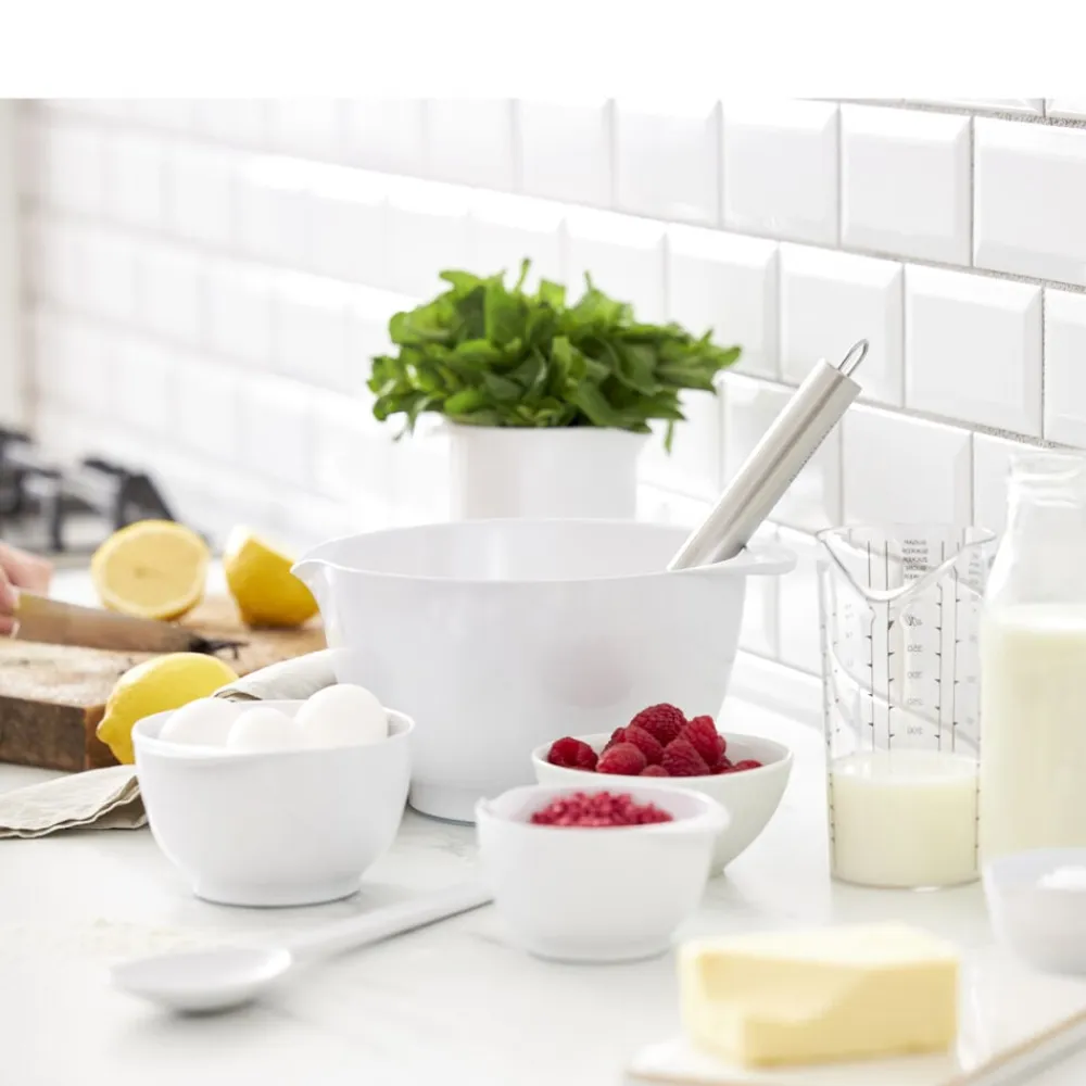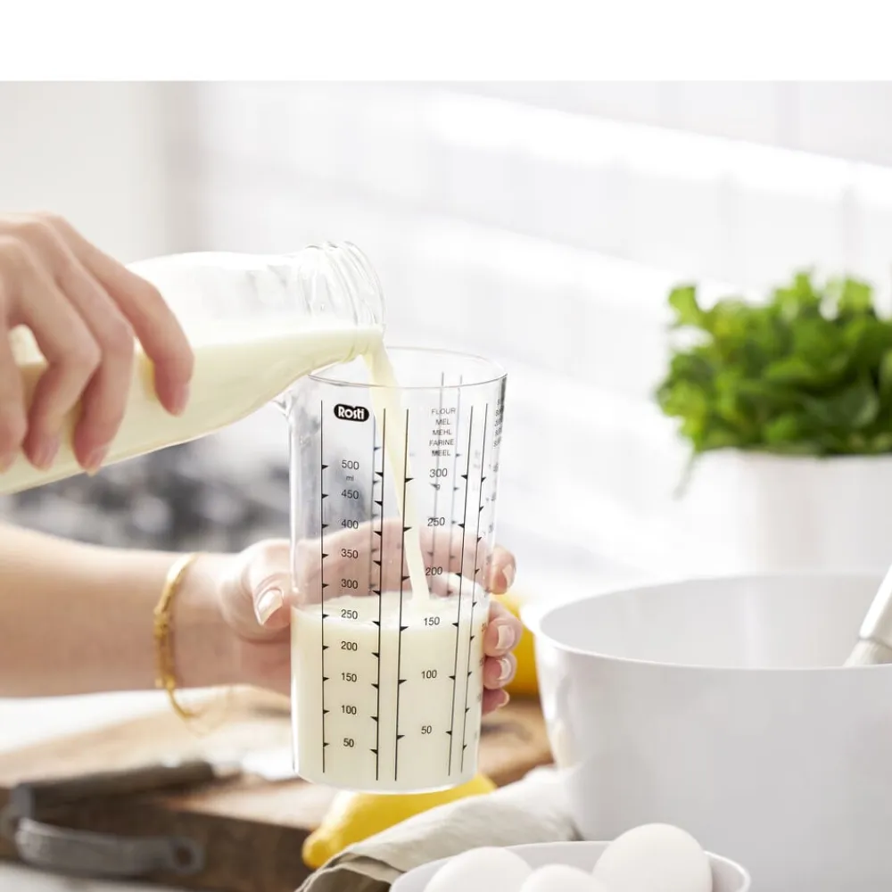 Rosti Målekande med tydelige målemarkeringer, inkl. angivelser for mel og sukker. Pga. pladsbesparelse er kanden uden hank, men den lille diameter gør den alligevel nem at håndtere. SAN er en ridsefast, robust og glansfuld plasttype. Tåler opvaskemaskine op til 80 grader. Tåler ikke mikroovn. 5 års garanti.