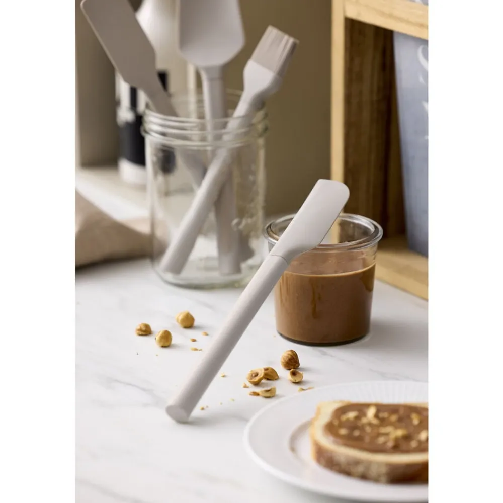 Den smalle dejskraber er specielt egnet til glas, dåser, krukker og lignende beholdere, hvor det kan være svært at komme til. Med sin elegante æstetik og smalle profil er denne dejskraber skabt til præcision og alsidighed. Den glider ubesværet ind i selv de smalleste glas og skåle, hvilket gør den ideel til marmelader, saucer og andre lækkerier. Den er designet til at holde længe og tåle daglig brug. Brug den til at skrabe, smøre og blande med lethed og nøjagtighed – og undgå spild.
