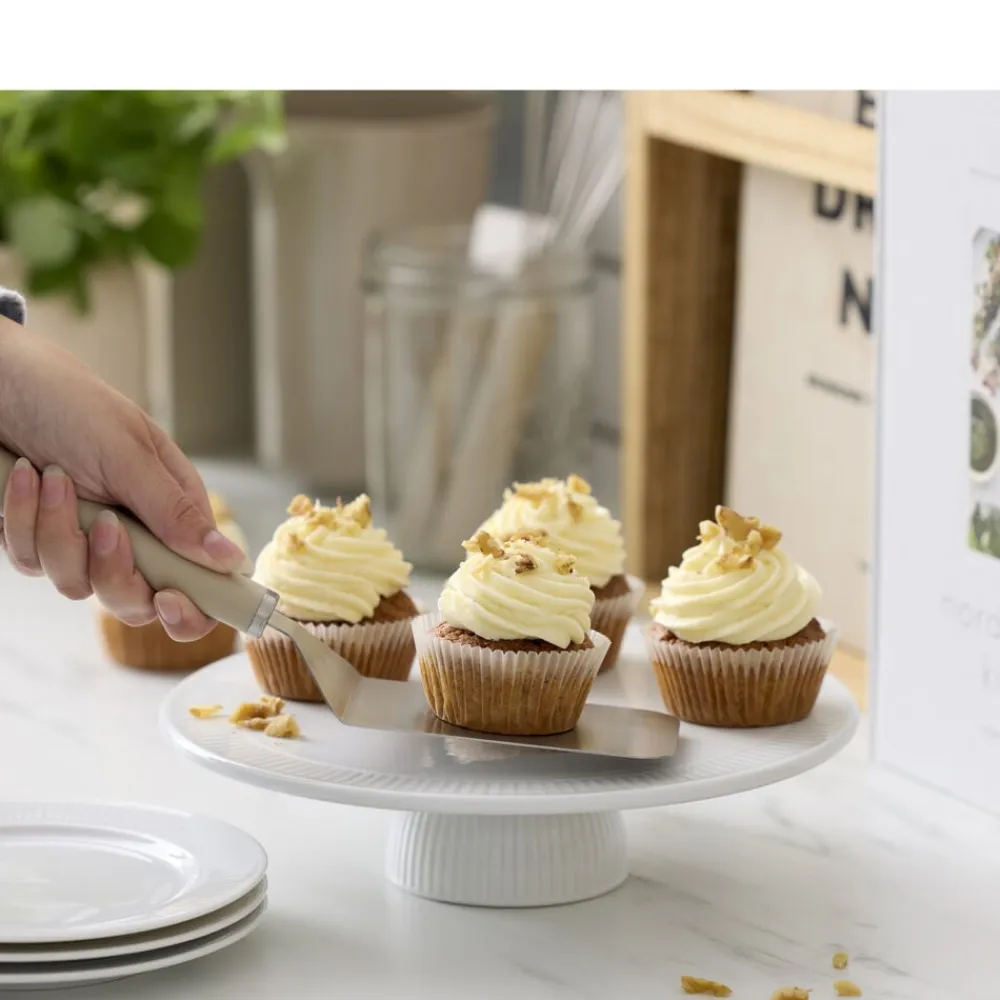 Den brede palet er alsidig og brugervenlig. Hvad enten du løfter småkager fra bagepladen eller vender bøffer på panden, glider det fleksible blad nemt ind under maden. Paletten med det ergonomiske håndtag kan bruges til mange forskellige opgaver ved madlavning og bagning og er et musthave for enhver madentusiast. Velegnet til opvaskemaskine.