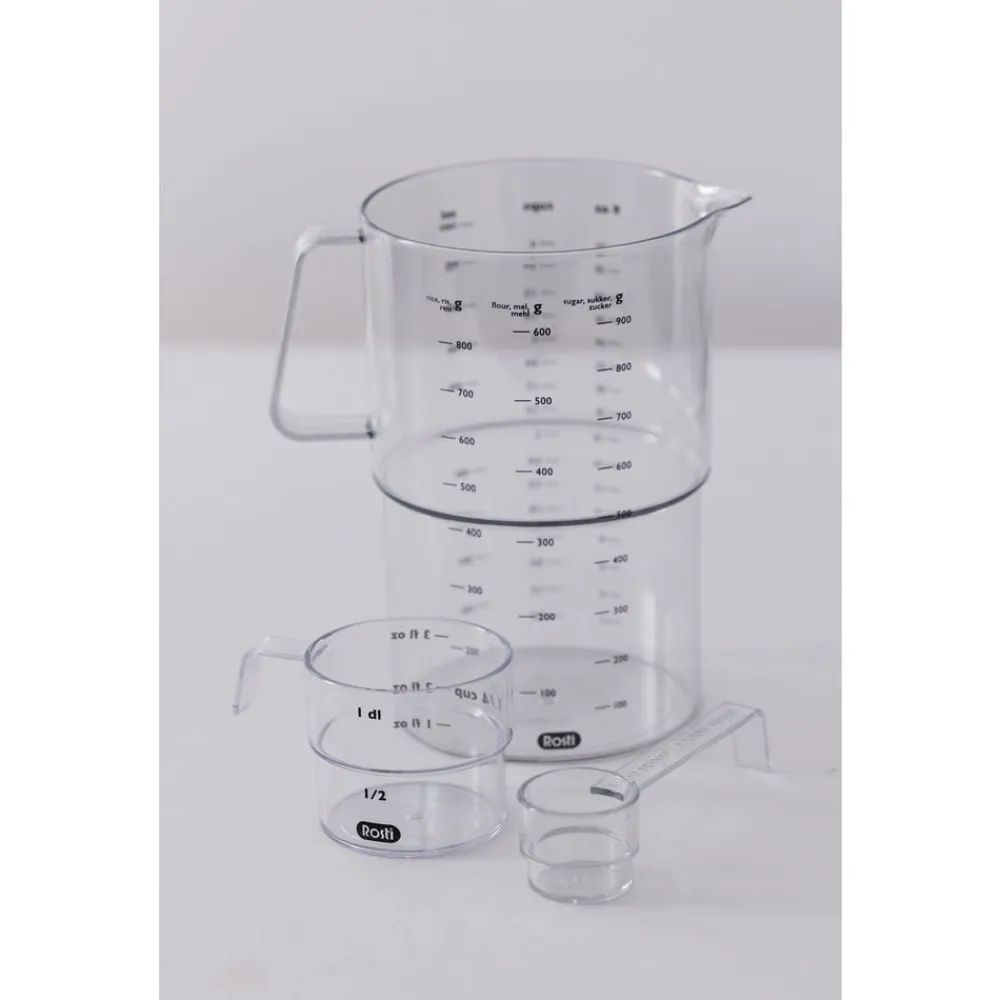 Mensura betyder ’at måle’, og essensen af Mensura-serien er netop at måle hurtigt og præcist. Målesættet består af en 1,0 liter målekande, et decilitermål og en måleske, fremstillet i SAN, som er meget transparent og har høj kvalitet og god holdbarhed. 5 års garanti.