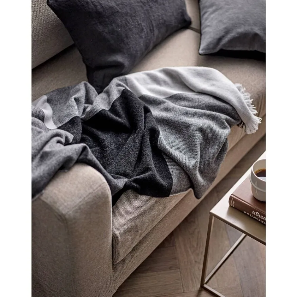Svøb dig i en skøn plaid af 85 % merino og 15 % cashmere – to lækre typer uld, der i forening sikrer, at du holder varmen. Det luksuriøse tæppe med klassiske store tern i farvenuancer, der komplementerer hinanden, er både diskret og sofistikeret. Mindsettet er “jo mindre, jo bedre”, hvor ting med holdbar værdi og kvalitet spiller en central rolle. Med sin underspillede tilgang til farve og det enkle look, der passer til alt, bliver denne plaid hurtigt uundværlig. Merino-plaiden er fremstillet af de fineste merino-uldfibre, som sammen med den lækre kashmiruld giver et meget blødt uldstof.