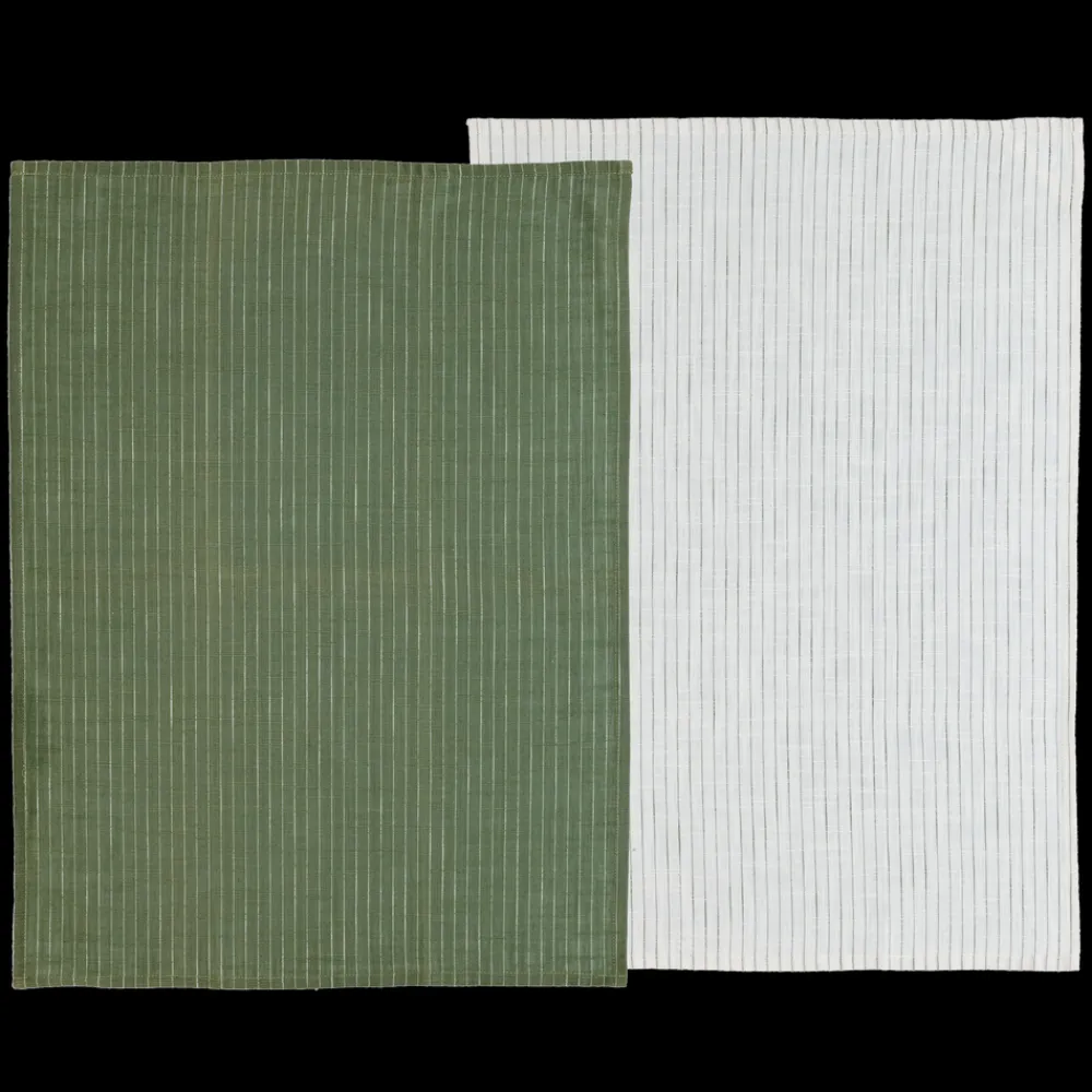 Rene linier og ro for øjet opnår man med denne duo. I hver viskestykkepakke er der en lys og en mørk variant af den klassiske nålestrib. Stilen er ren og enkel, en ny klassiker til hverdagsbrug.