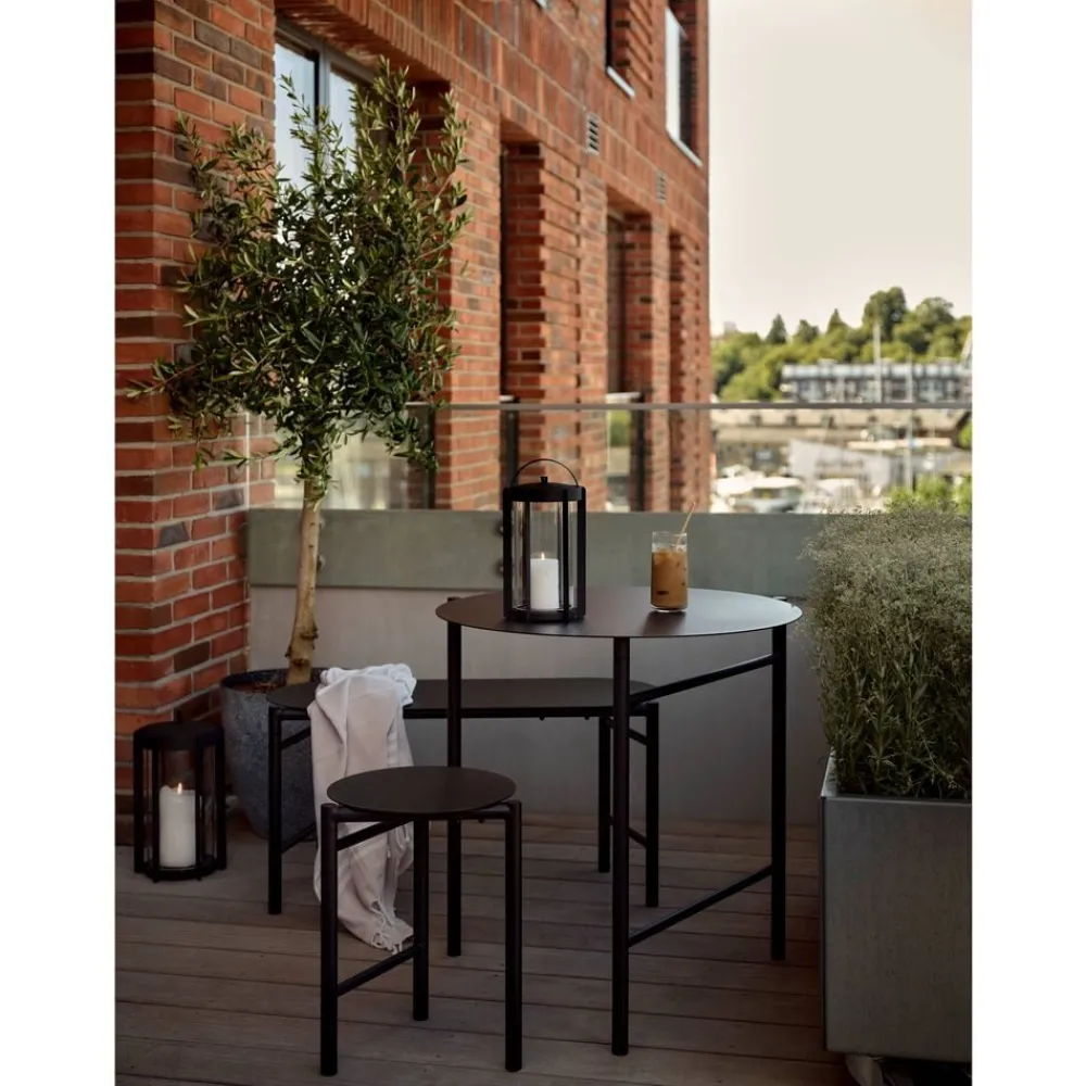 Disc-bænken er med sine 90 cm siddebredde perfekt til to. På trods af sit lette udtryk er den solid i brug. Den er udført i pulverlakeret stål og kan derfor tåle at stå ude. Den passer perfekt på altaner i byen eller små sommerhusterrasser. Præcis som resten af Disc-serien kan bænken foldes sammen, så den er let at flytte med eller pakke væk for vinteren. En anden mulighed er at invitere den ind i entreen eller stuen og bruge den til små stillebens og planter.