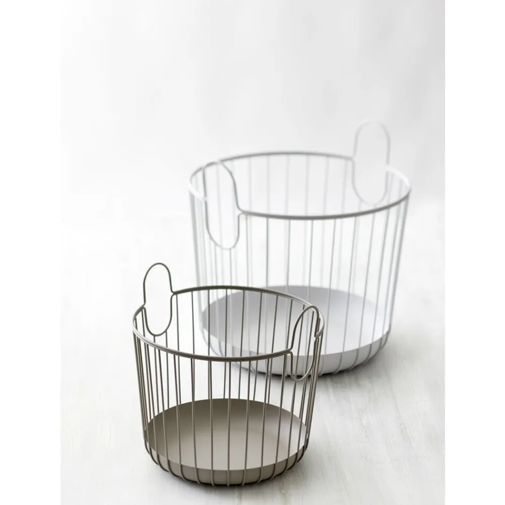 Flot metalkurv til håndklæder eller vasketøj i badeværelset, puder, tæpper og magasiner i stuen – eller til store grønne planter overalt i boligen. Kurvene fås i to størrelser, som kan stables. Det er lækkert interiør, som giver øjet ro.