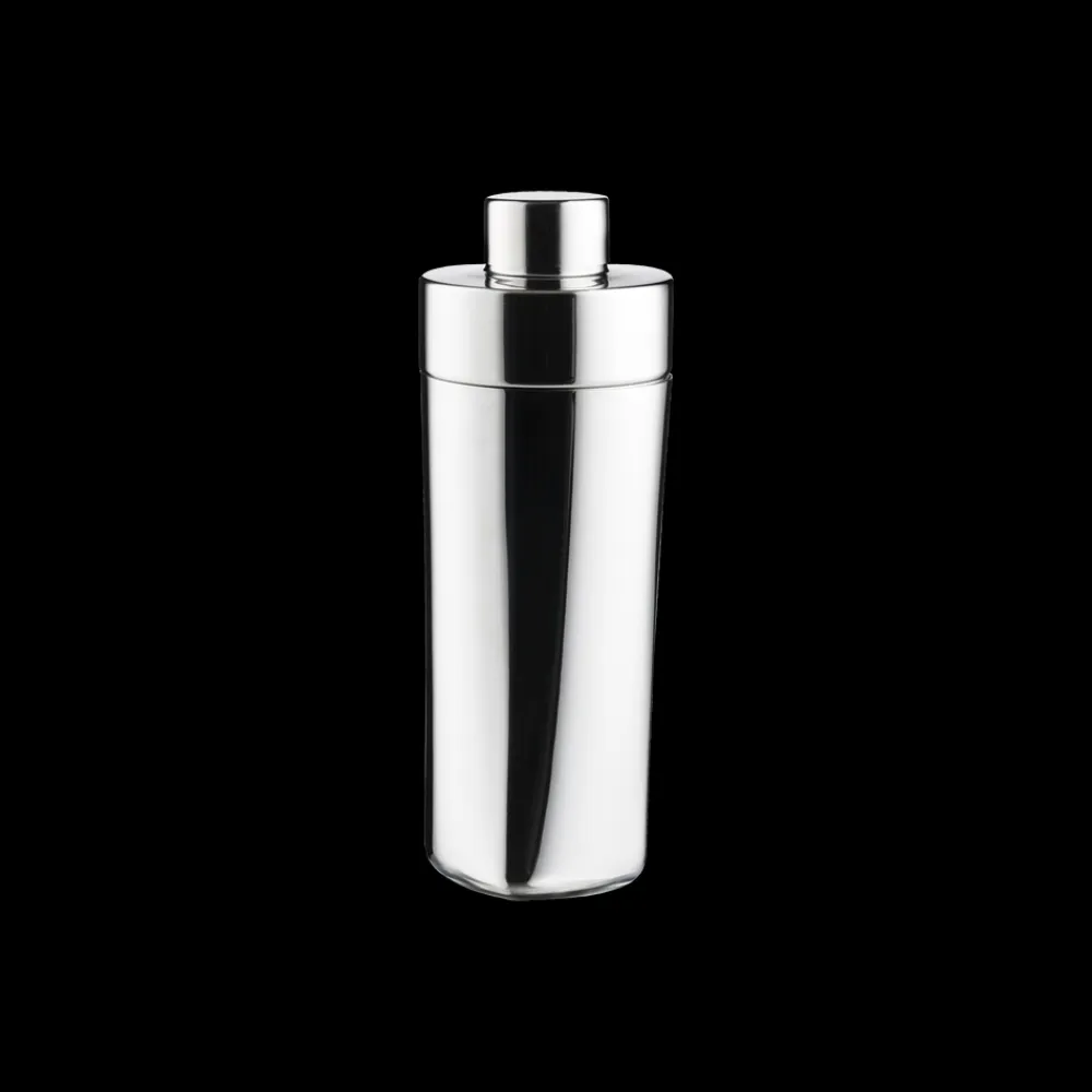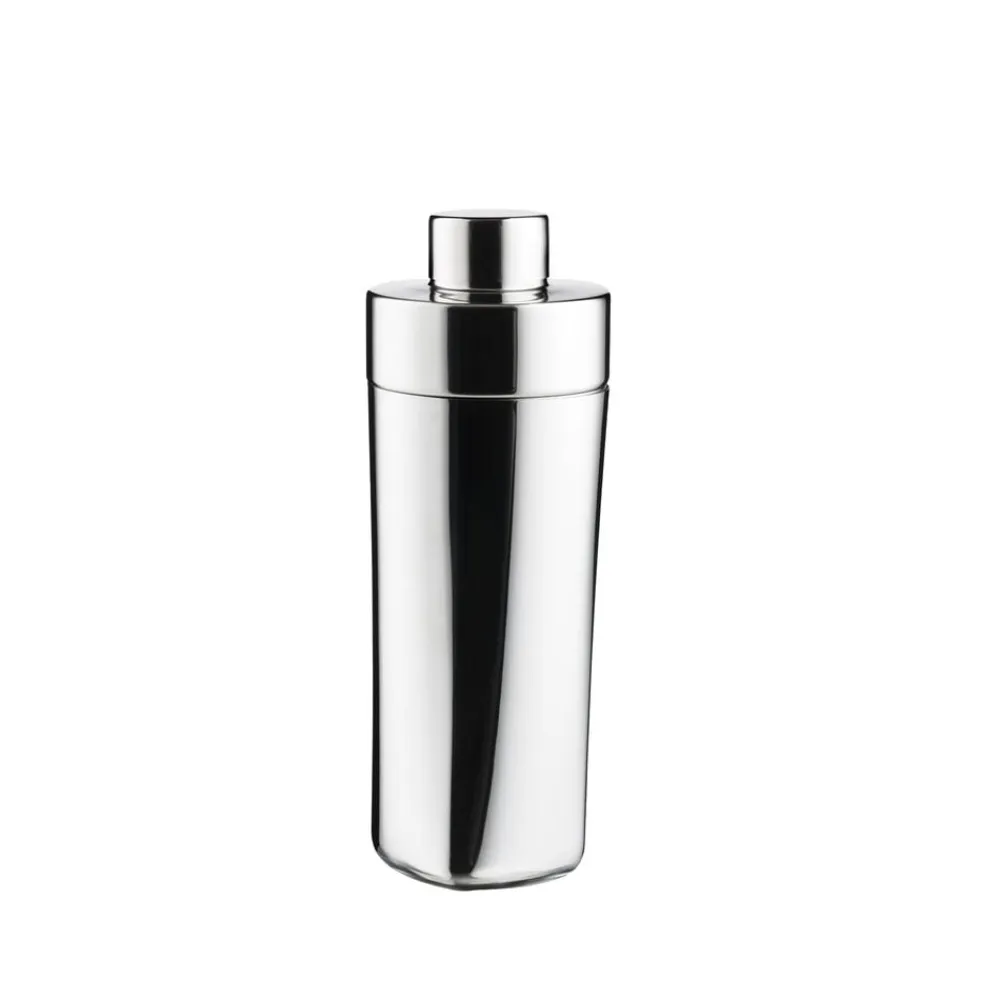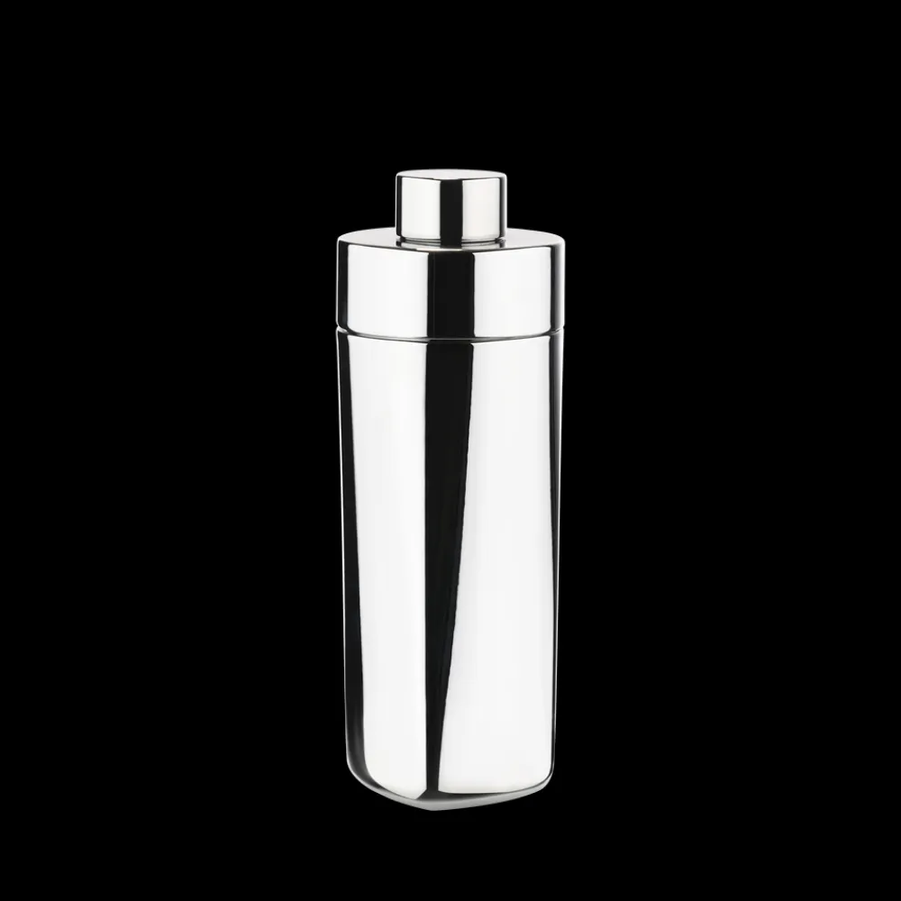 Shaker designet af Mavro//Lefèvre med inspiration fra en smeltende isternings på en gang skarpe og bløde former. Shakeren er udført i spejlblankt, rustfrist stål og har indbygget filter under låget. H 23,2 cm. 0,4 l.