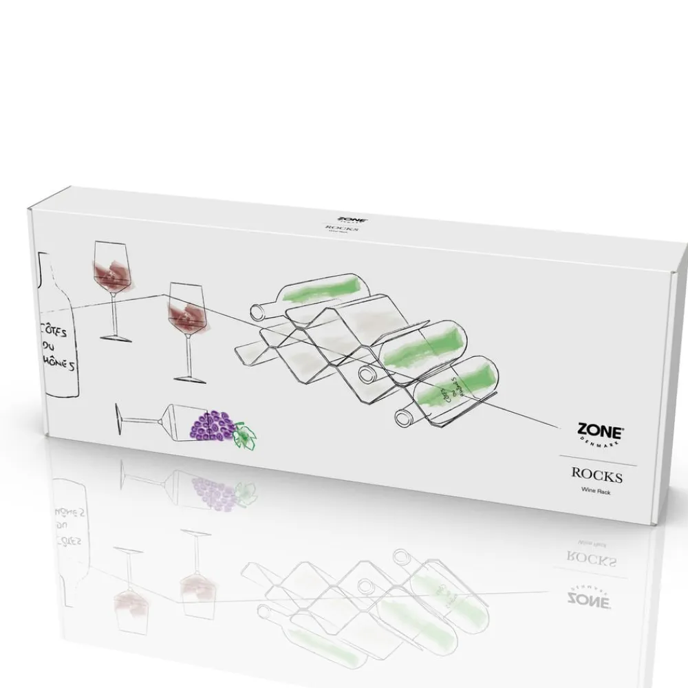 Stilrent og stabilt design. De fleste elsker synet af en fyldt vinreol. Derfor er det praktisk, at vinreolen Rocks kan rumme op til 9 flasker, men nedskaleres i størrelse i takt med, at flaskerne tømmes. Pyramiden bygges op fra bunden, og du kan nemt klikke en etage mere på, hvis du får brug for det.