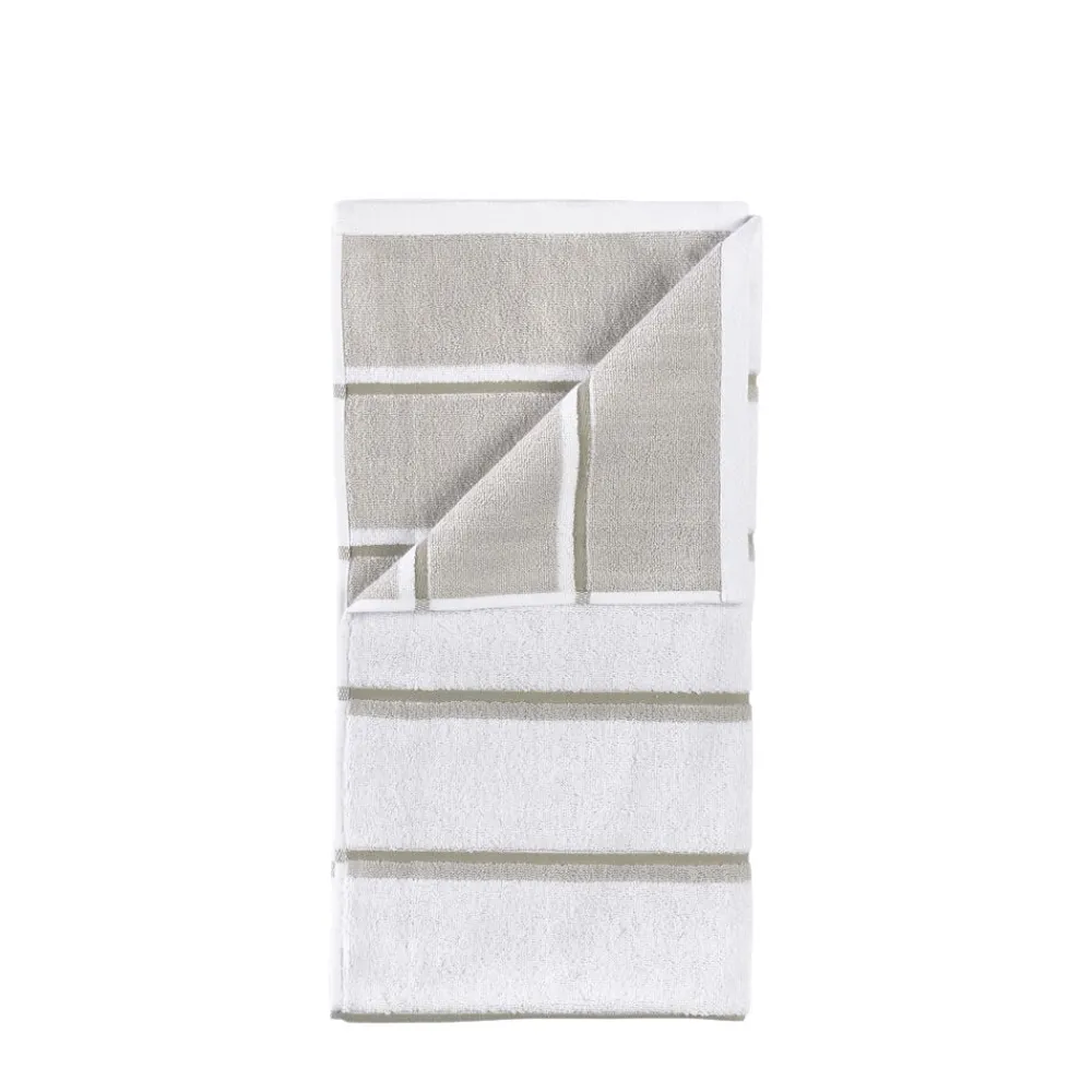 De retroinspirerede striber tilføjer et grafisk, urbant touch, og med en blød, kraftig kvalitet i garnfarvet 600 grams bomuld, føles håndklædet lige så lækkert, som det ser ud.