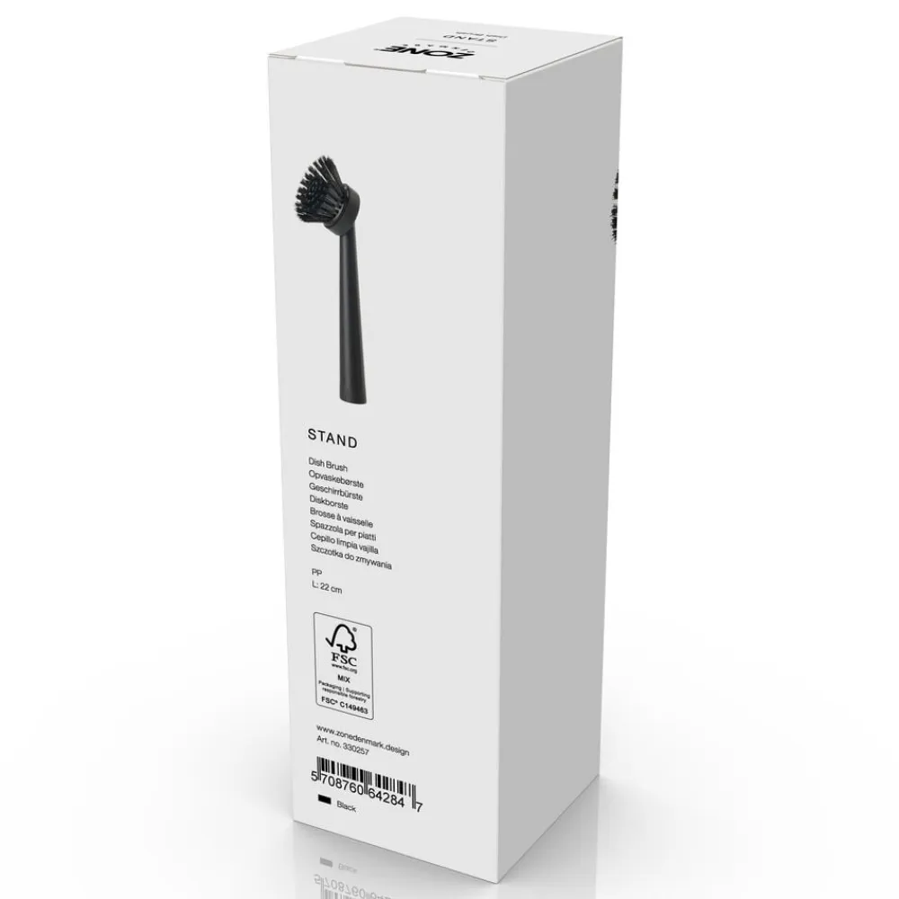 Stand opvaskebørste kan stå selv – som en lille skulptur ved køkkenvasken. Børstehovedet kan udskiftes, så du altid har en frisk og opvaskeklar børste. Hovedet fås i tre hårdheder: blød, medium og hård. 22 cm.