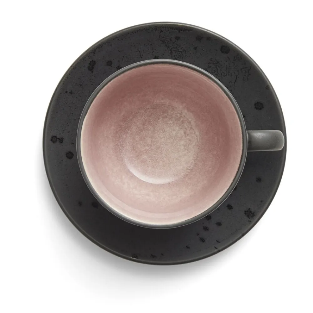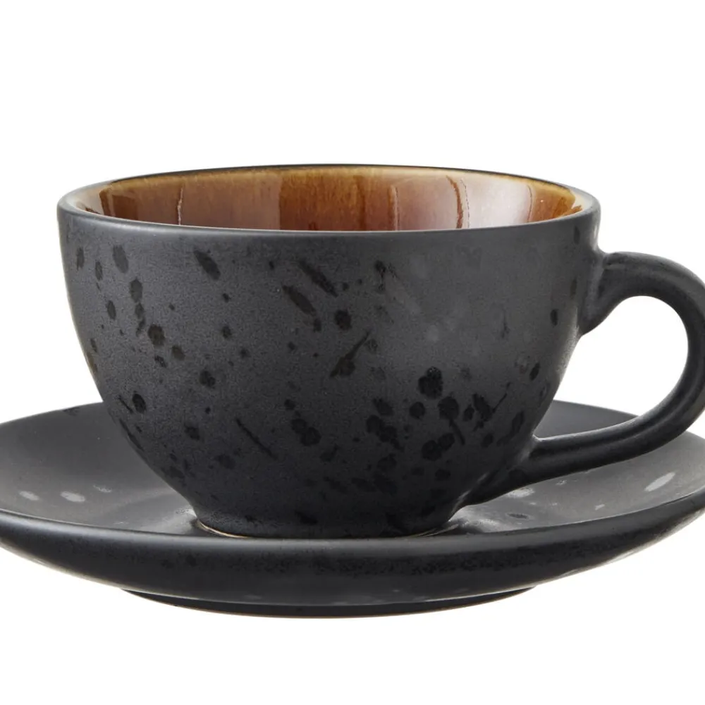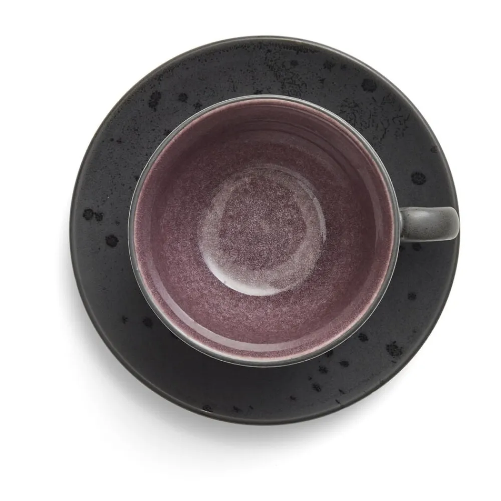4 stk. Nyd din cappuccino og dine andre kaffefavoritter i den flotte BITZ Kop med underkop. Fremstillet i mat, sort stentøj med blank glasur i amber, lyserød, lilla, creme på koppens inderside. 24 cl, 6 cm høj. Velegnet til maskinopvask, mikroovn og ovn op til 220 gr.