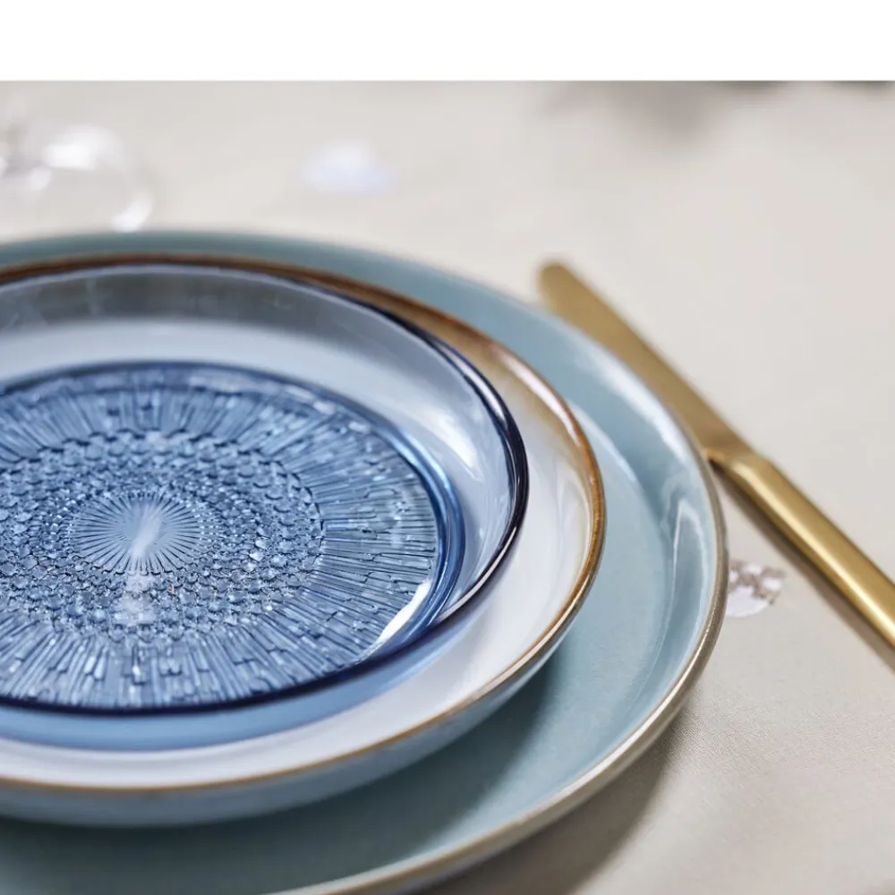 Dæk op med flotte tallerkener i gennemfarvet glas. Brug dem til forretter, salat, desserter, kager eller som et lille serveringsfad. Når du køber fra Kusintha-kollektionen, støtter du samtidig udsatte børn i verdens fattigste områder.