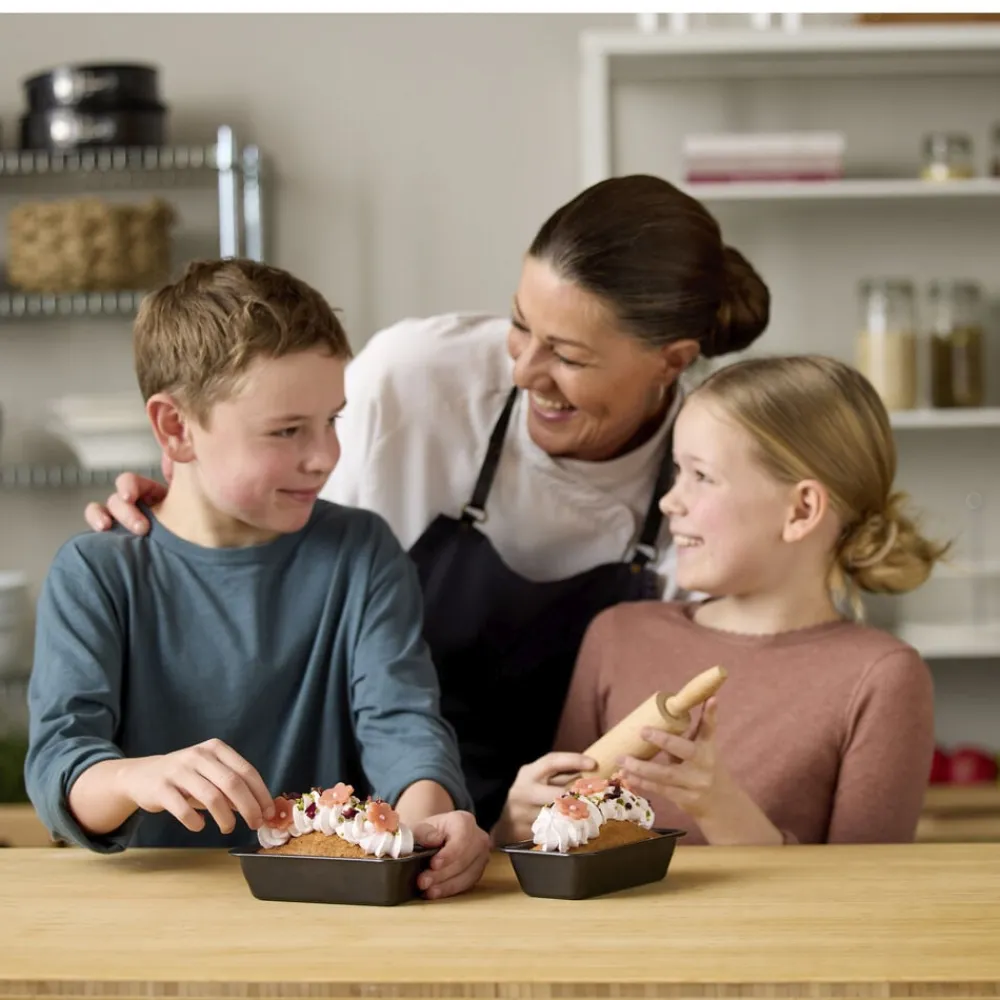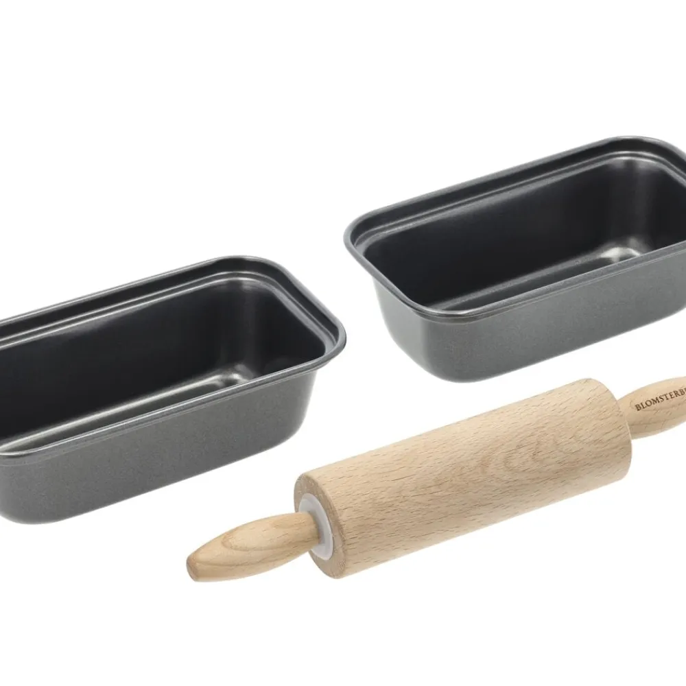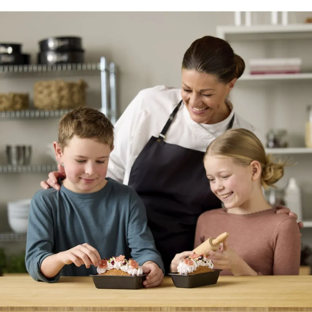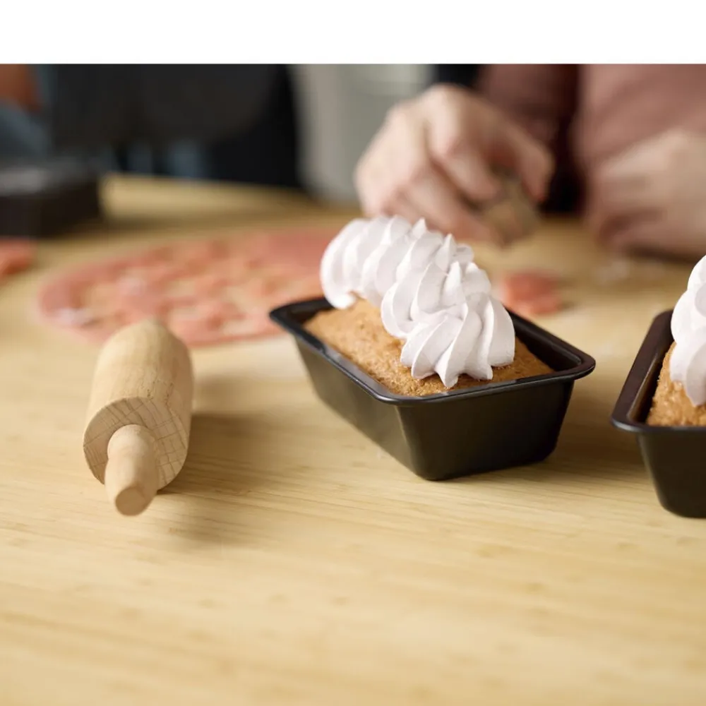 Nyd bagekunstens små glæder med et sødt bagesæt bestående af to minibrødforme på 15,5 x 8,5 x 4,5 cm og en kagerulle i FSC-certificeret bøgetræ på 22 x 4 cm. Ideelt til små udgaver af dine foretrukne kage- og brødopskrifter og egner sig godt til bageentusiaster i alle aldre. Uanset om du lige har taget hul på dit bageeventyr eller er en erfaren mesterbager, har formene en god størrelse til at eksperimentere med nye opskrifter eller forfine de klassikere, du allerede elsker. Formene er fremstillet i carbonstål med non-stick-belægning, som slipper nemt og er let at rengøre. Tåler ovn (maks. 220 °C) og fryser (maks. -20 °C). Vaskes med varmt vand og sæbe før første brug. Håndopvask anbefales.