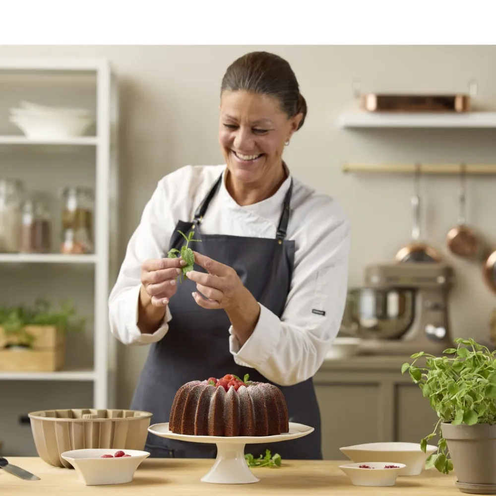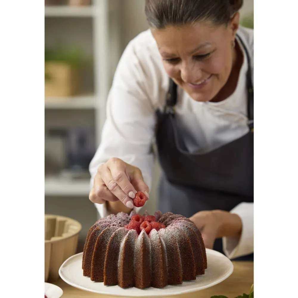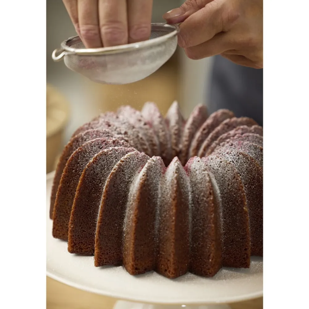 Få din kage til at ligne et kunstværk med denne smukke bundt-kageform. Formen er støbt i holdbart aluminium og har en non-stick-belægning på indersiden, der sikrer, at kagen let slipper formen og bevarer det smukke mønster, når den skal serveres. Tåler ovn (maks. 220°C) og fryser (maks. -24 °C). Velegnet til opvaskemaskine.