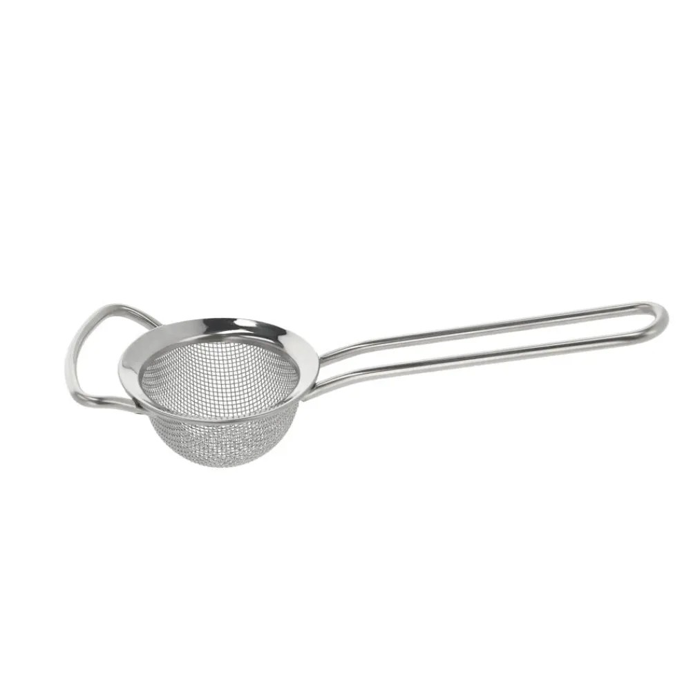 Denne lille, fine trådsigte på 6 cm er ikke til at kimse ad. Perfekt til et drys flormelis over en muffin, lidt kakao på toppen af en dessert eller til at sigte en enkelt skefuld vaniljesukker i kagedejen. Lavet i rustfrit stål og nem at smide i opvaskemaskinen, når du er færdig. Lille, ja – men ikke til at undvære.