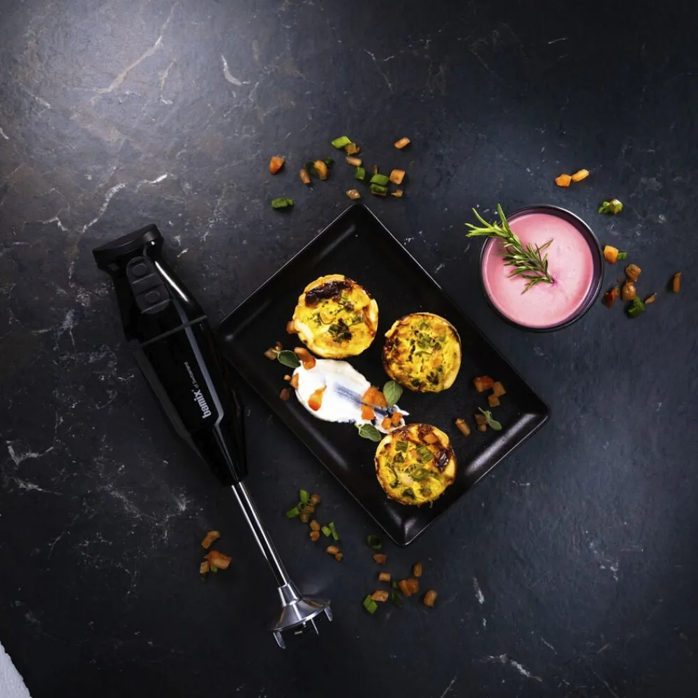 Med din bamix® Cordless og dens tilbehør kan du piske, purere, røre, blende, mikse, mose, knuse og hakke.
