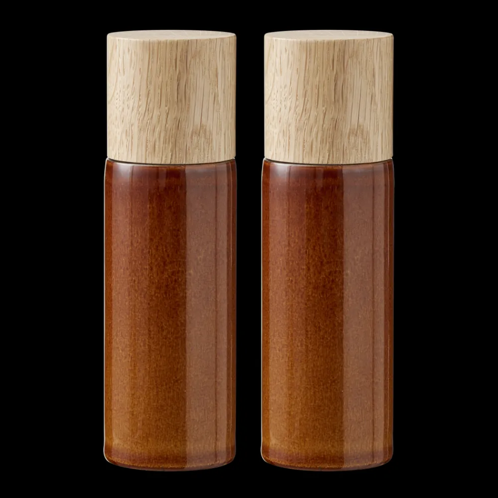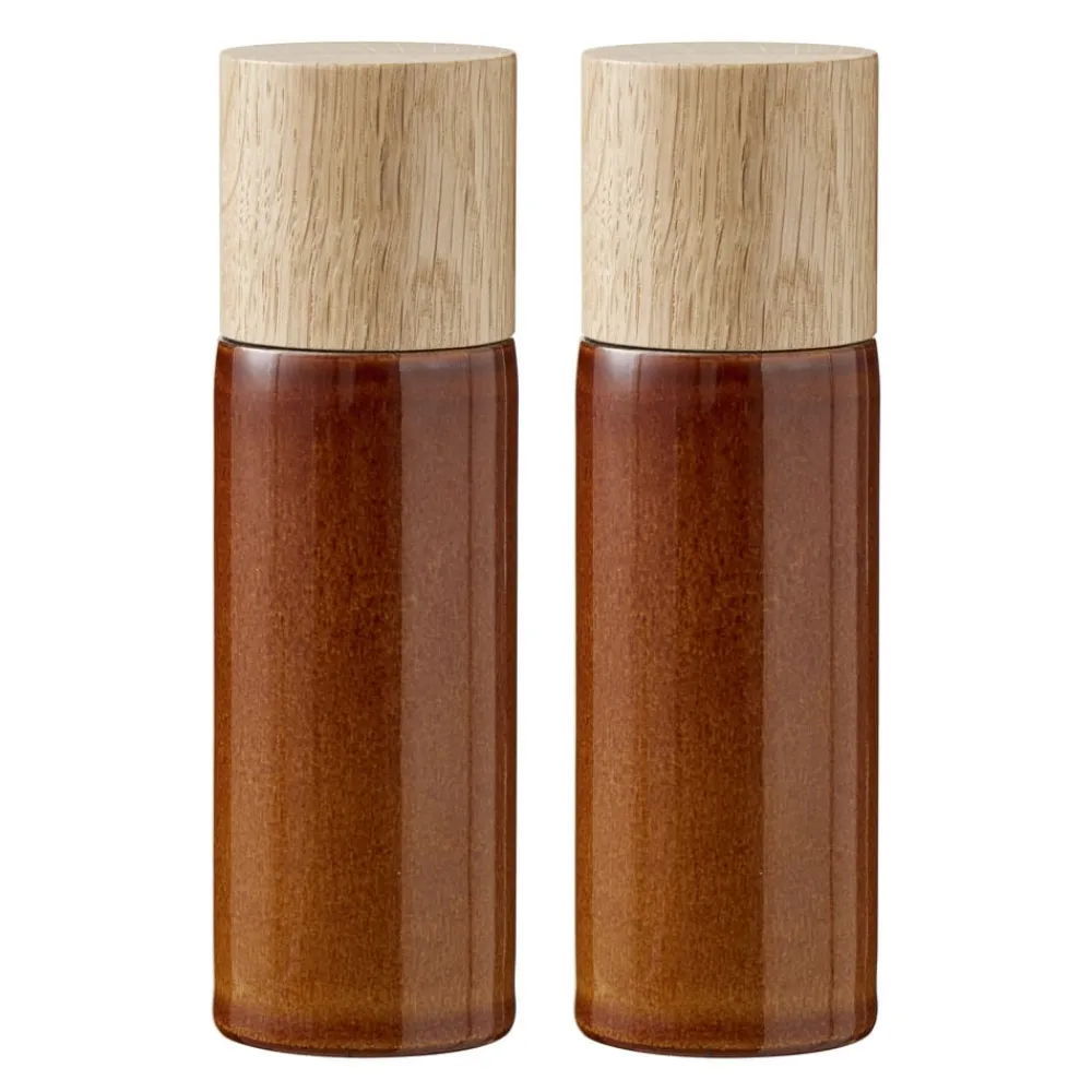 Salt- og peberkværnsæt i blankglaseret stentøj med top i egetræ. Den smukke farve passer til de øvrige produkter i BITZ’ farverige stentøjsserie, hvor den reaktive glasur giver hvert enkelt produkt sit helt unikke spil.